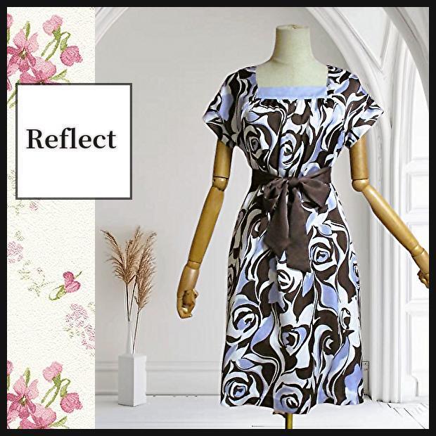 【リフレクト】ワンピース フラワープリント 9号 手洗 半袖 膝丈 通勤 会食 Reflect 通勤 お食事会 お呼ばれ 匿名発送