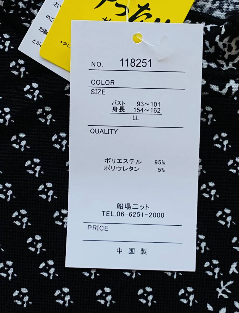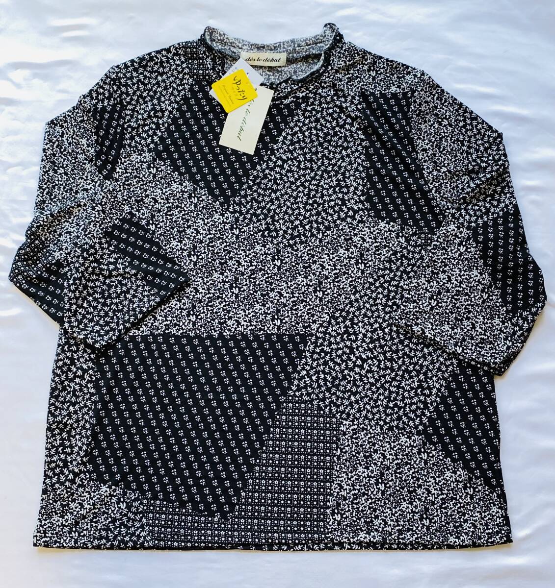 【新品】【送料込み】【LL】七分袖ニットプルオーバー ブラック系パッチワーク柄