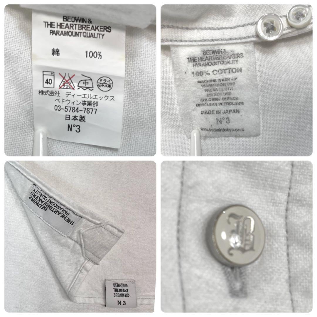 BEDWIN & THE HEARTBREAKERS オックスフォード コットン 長袖 ボタンダウンシャツ 3(M) ホワイト