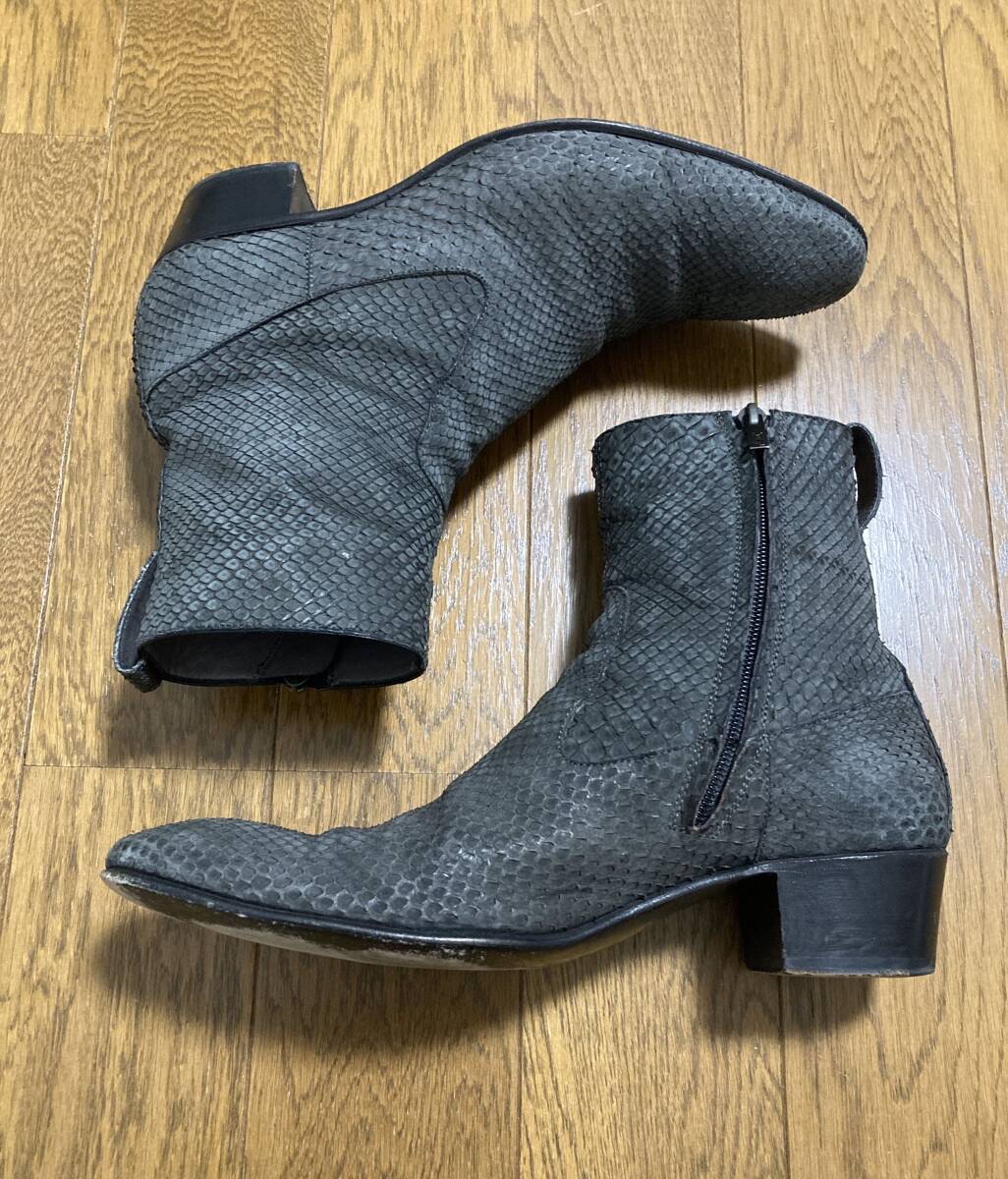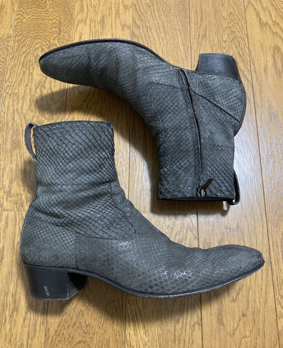 蛇革☆[Yves Saint Laurent] YSL PYTHON ZABRISKIE 45 ZIP BOOTS リアルパイソンレザー ザブリスキー サイドジップ ヒールブーツ 41 グレー イタリア製 メンズ イヴサンローラン