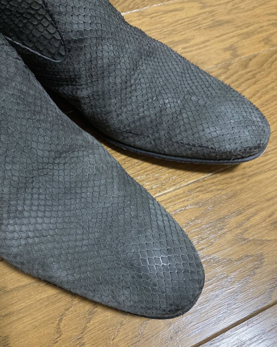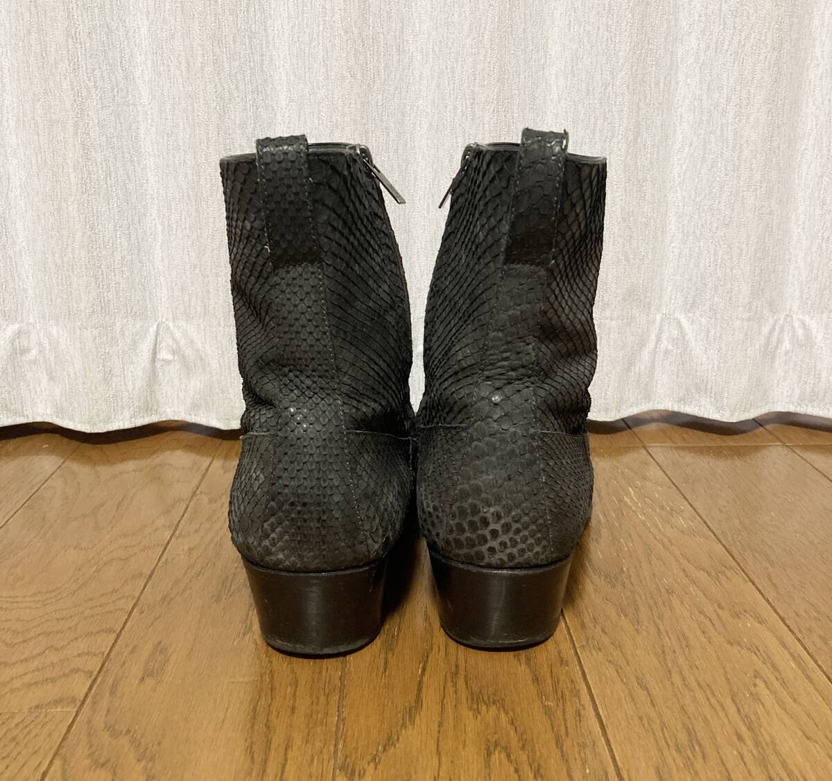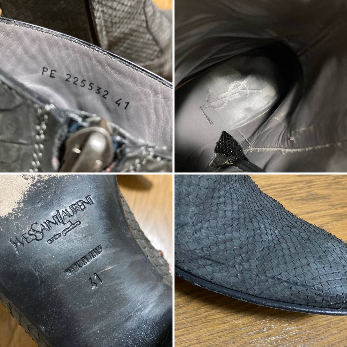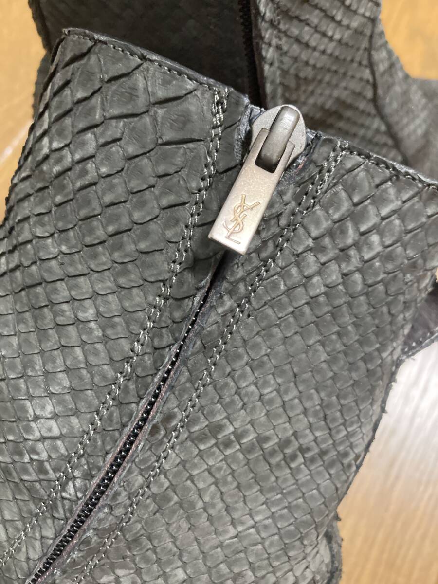 蛇革☆[Yves Saint Laurent] YSL PYTHON ZABRISKIE 45 ZIP リアルパイソン ザブリスキー サイドジップ ヒールブーツ 41 イヴサンローラン