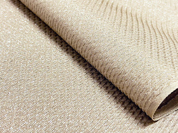| キラキラと、金色のラメが輝くふくれ織り帯揚げです。 ラメが入っていますので光の加減でキラキラと輝きます。 結び方アレンジは多種多彩色目! レース帯揚げなど、素材の違う帯揚げと重ねてお使い いただいても違ったイメージをお楽しみ頂けます。 ■素材 正絹 銀糸 ■色 くすみベージュ(くすみカラー) ■サイズ 長さ;約172cm 幅;約29cm ■配送方法 メール便 送料無料 | ||