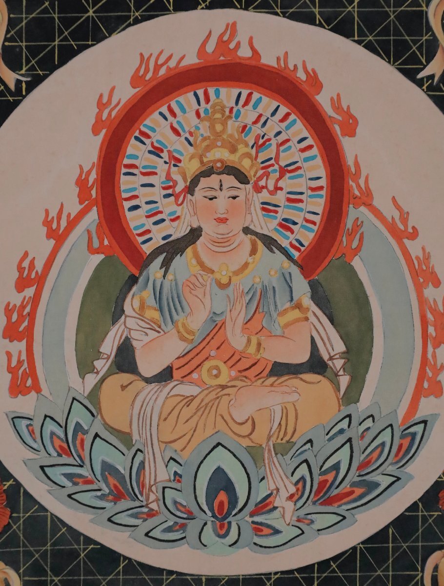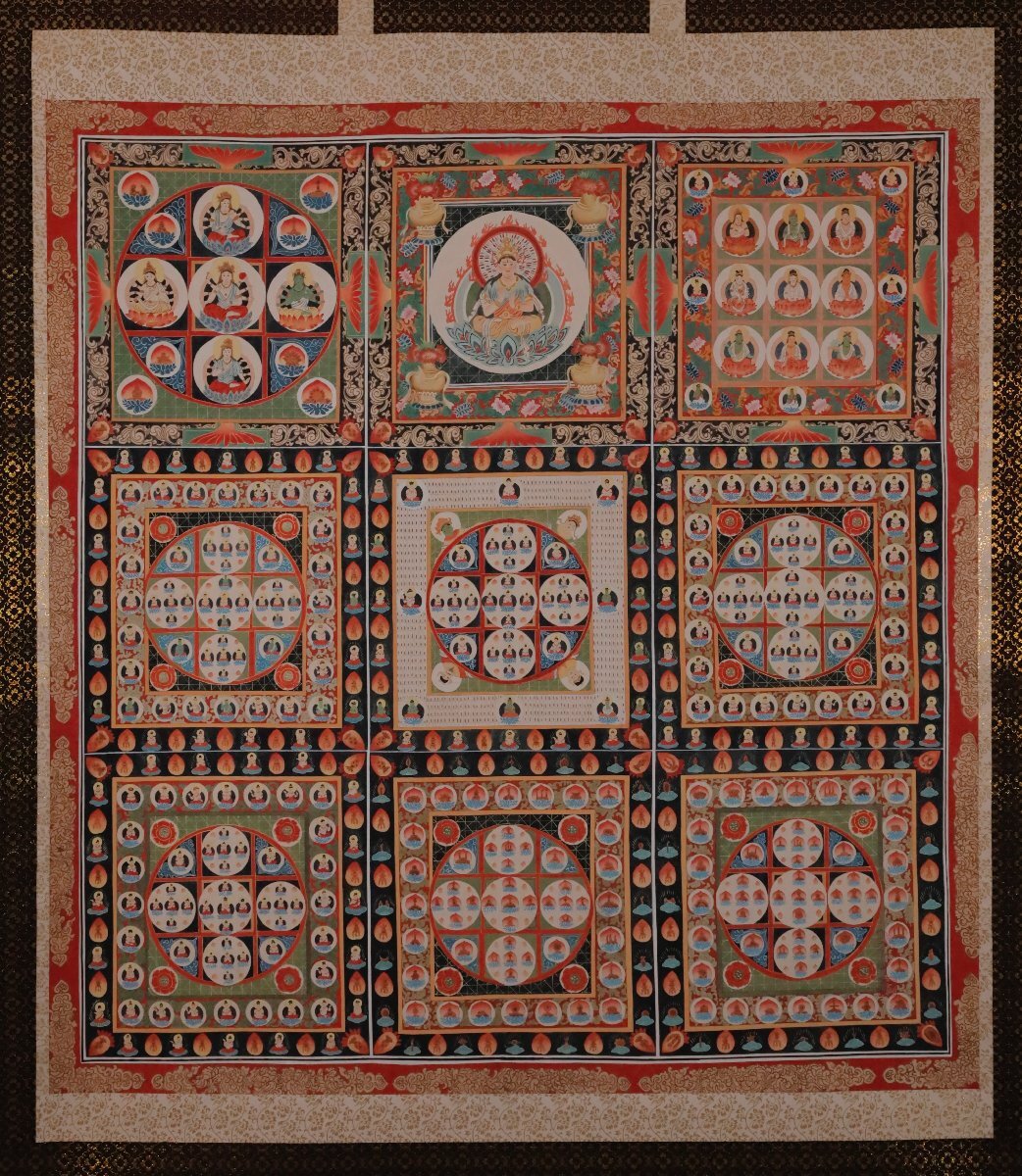 【模写】吉】12403 超大幅137cm 金剛界曼荼羅 無落款 仏画 仏教 中国画 真言密教 真言宗 大日如来 宗教 掛軸 掛け軸 骨董品