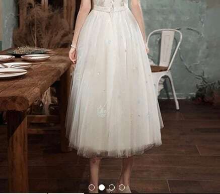 スパンコ-ル装飾チュールドレスです。トップスにはスパンコ-ル装飾が施されキラキラと綺麗です。デコルテラインと袖は透け感があり、パーティやイベント、結婚式など、様々なシーンで、気品のある印象を与えてくれる一着です。サテン地の上に3枚のチュ-ルが重ねられたとても女性らしいデザインになっています。裏地なし。背中網掛け。背中腰から下ファスナ-有。胸パット付。