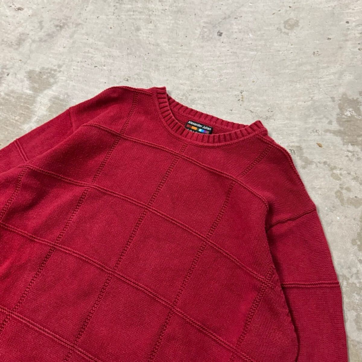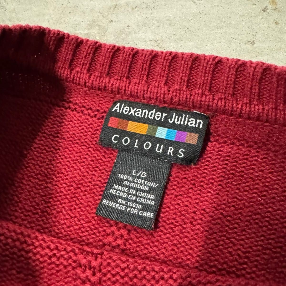 90s Alexander Julian コットンニット ヴィンテージ ラルフ ローレン Ralph Lauren レッド 赤 セーター アレキサンダージュリアン 80s L
