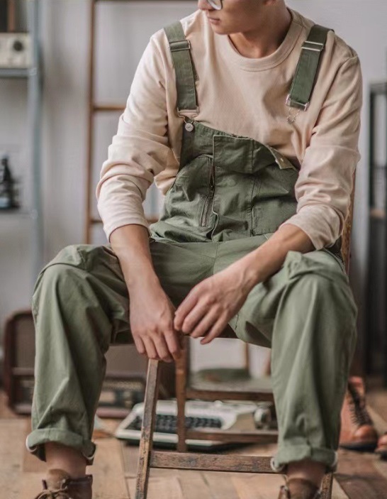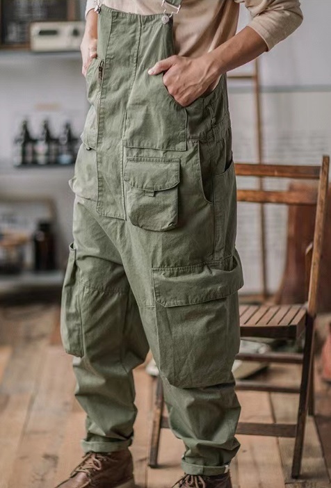 オーバーオール サロペット メンズ ゆったり つなぎ オールインワン ワークパンツ 作業服 緑/2XL