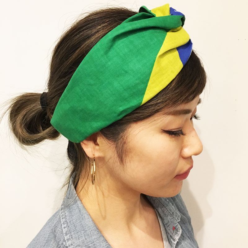 【ブラジル国旗柄】ターバン風ヘアバンド | ブラジルカラー