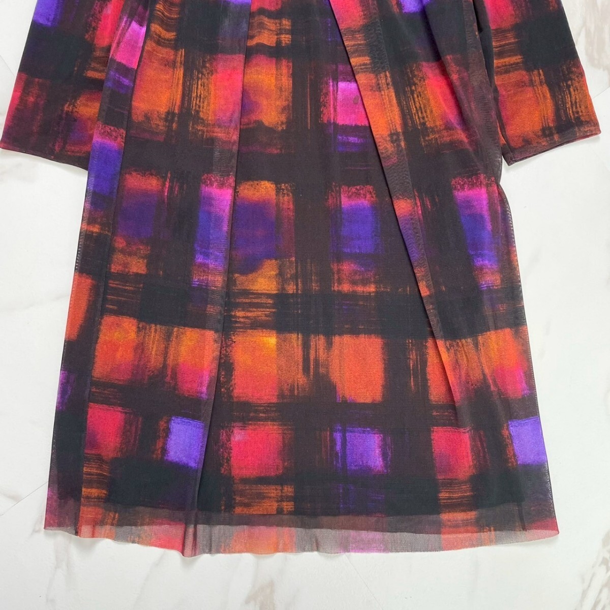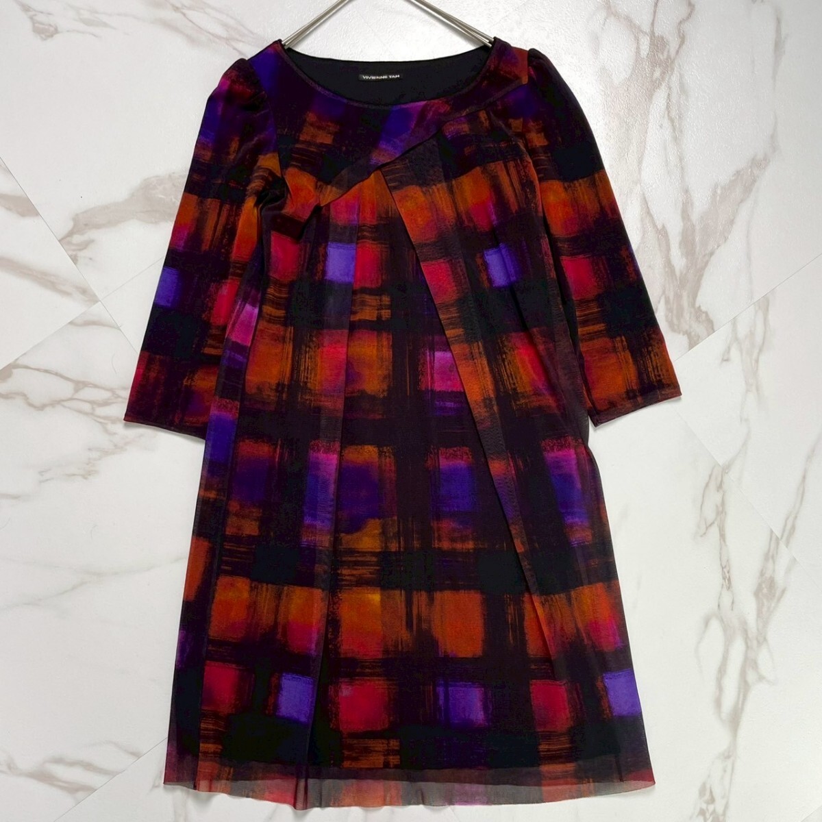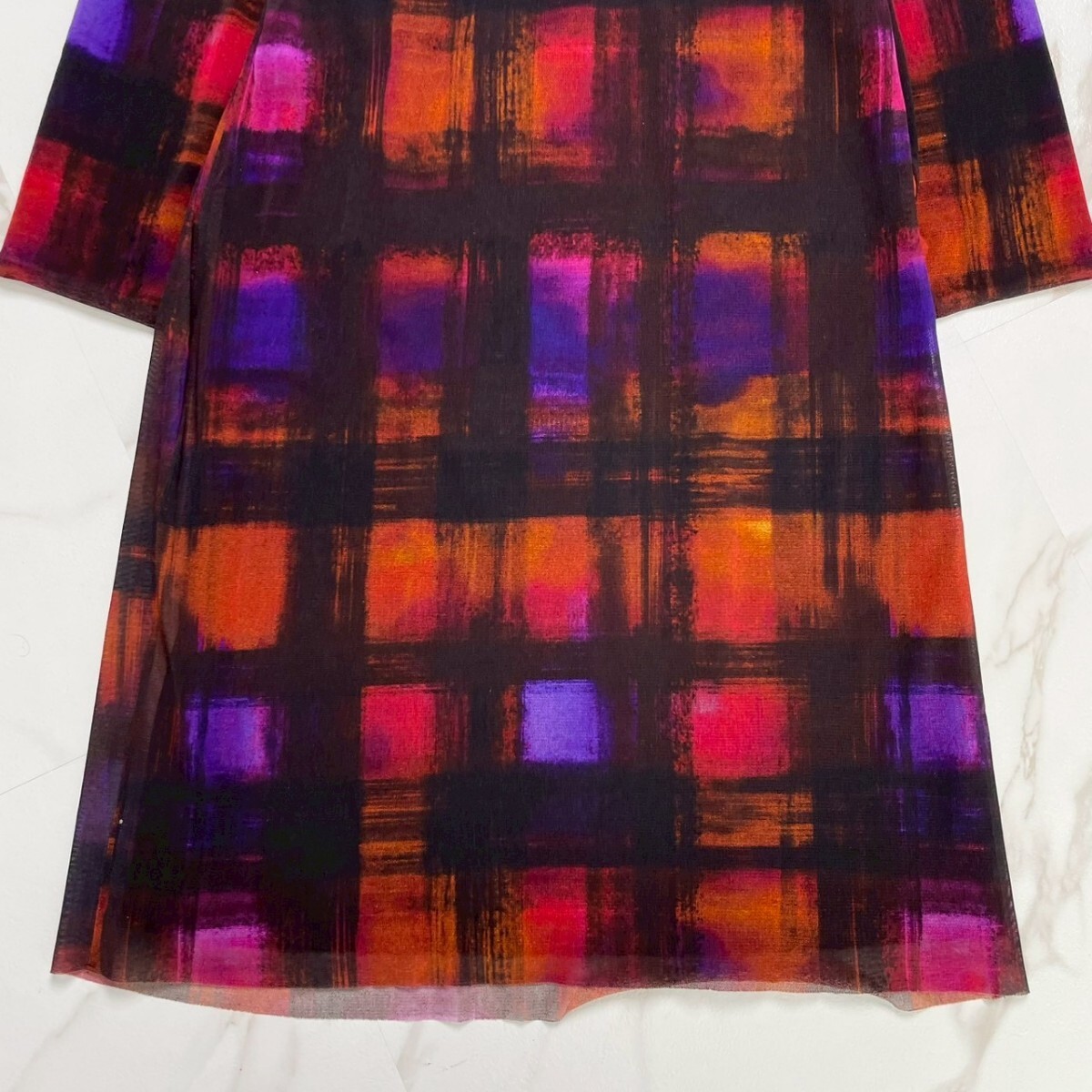 VIVIENNE TAM ヴィヴィアンタム ワンピース パワーネット 伸縮性 ストレッチ 折り返し チェック 七分袖 カジュアル レディース