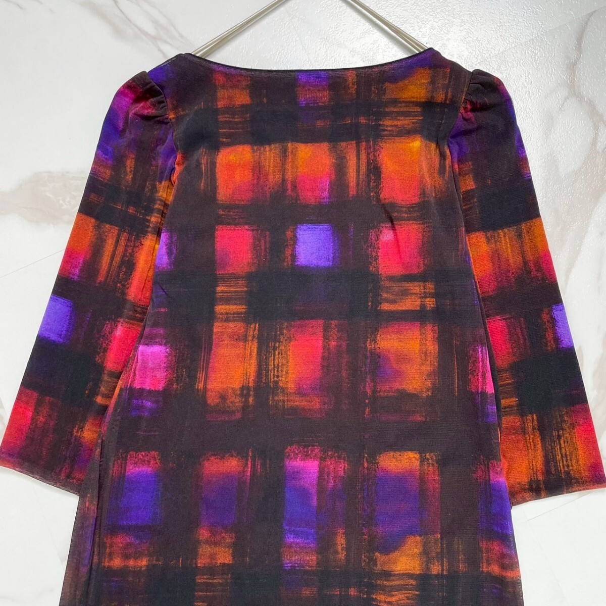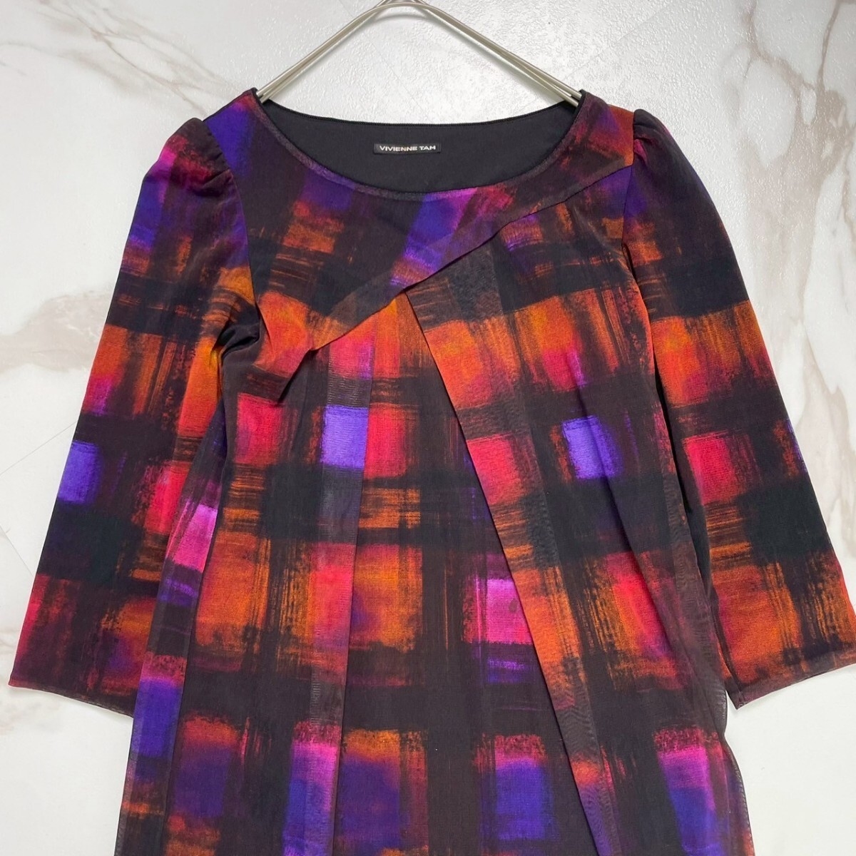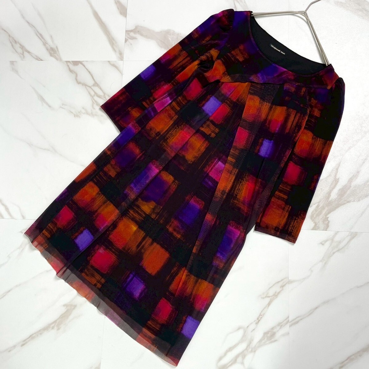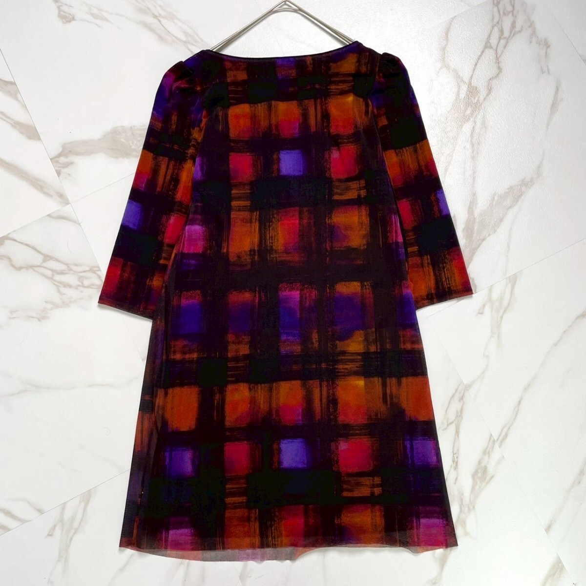 VIVIENNE TAM ヴィヴィアンタム ワンピース パワーネット 伸縮性 ストレッチ 折り返し チェック 七分袖 カジュアル レディース
