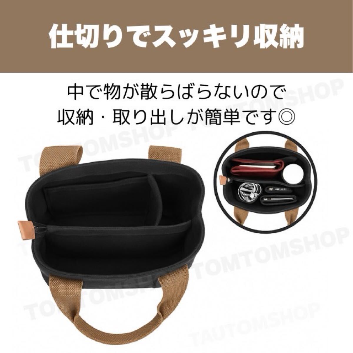 お財布、スマホ、ポーチ、500mlペットボトルなど、必要なものがきちんと収まり、バッグの中も仕切り付きでスッキリ整理整頓できます。