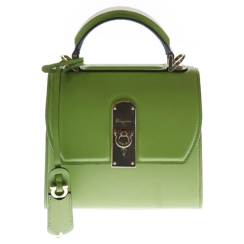 Salvatore Ferragamo サルヴァトーレ フェラガモ Boxyz ボクシィズ ガンチーニ 2wayバッグ トップハンドル グリーン レザー 21H647