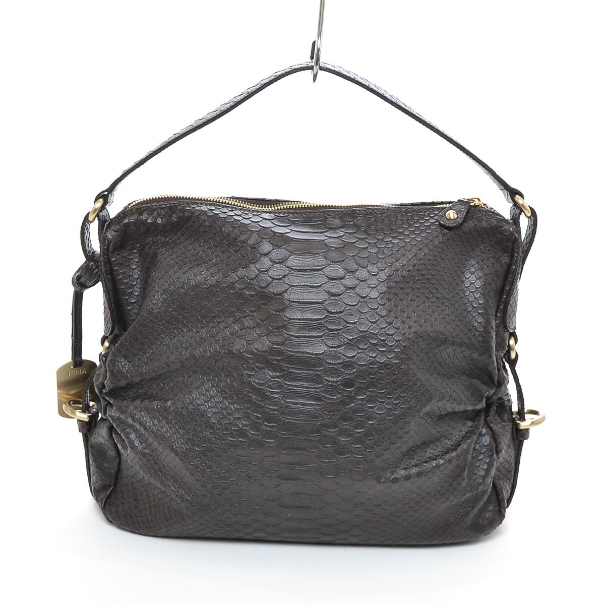 □359920 FURLA フルラ ショルダーバッグ レザー クロコダイル型押し レディース ダークブラウン