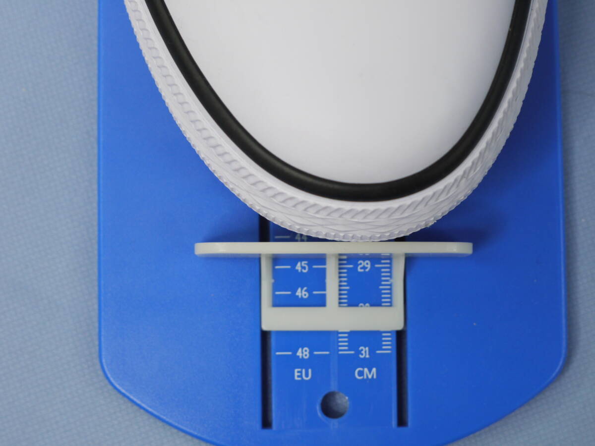 ホ)サイズの合わない靴を無理に履くと外反母趾その他思わぬ障害や怪我をしますので、無理に履かないでください
