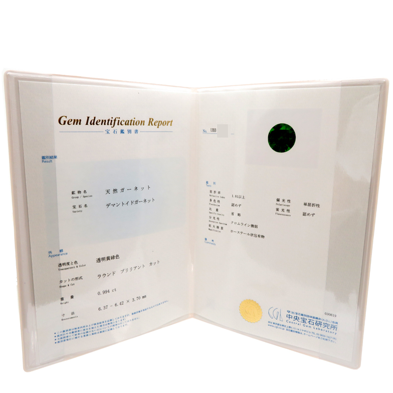 品名 | 0.994ct 天然デマントイド ガーネット ネックレス Pt900プラチナ |