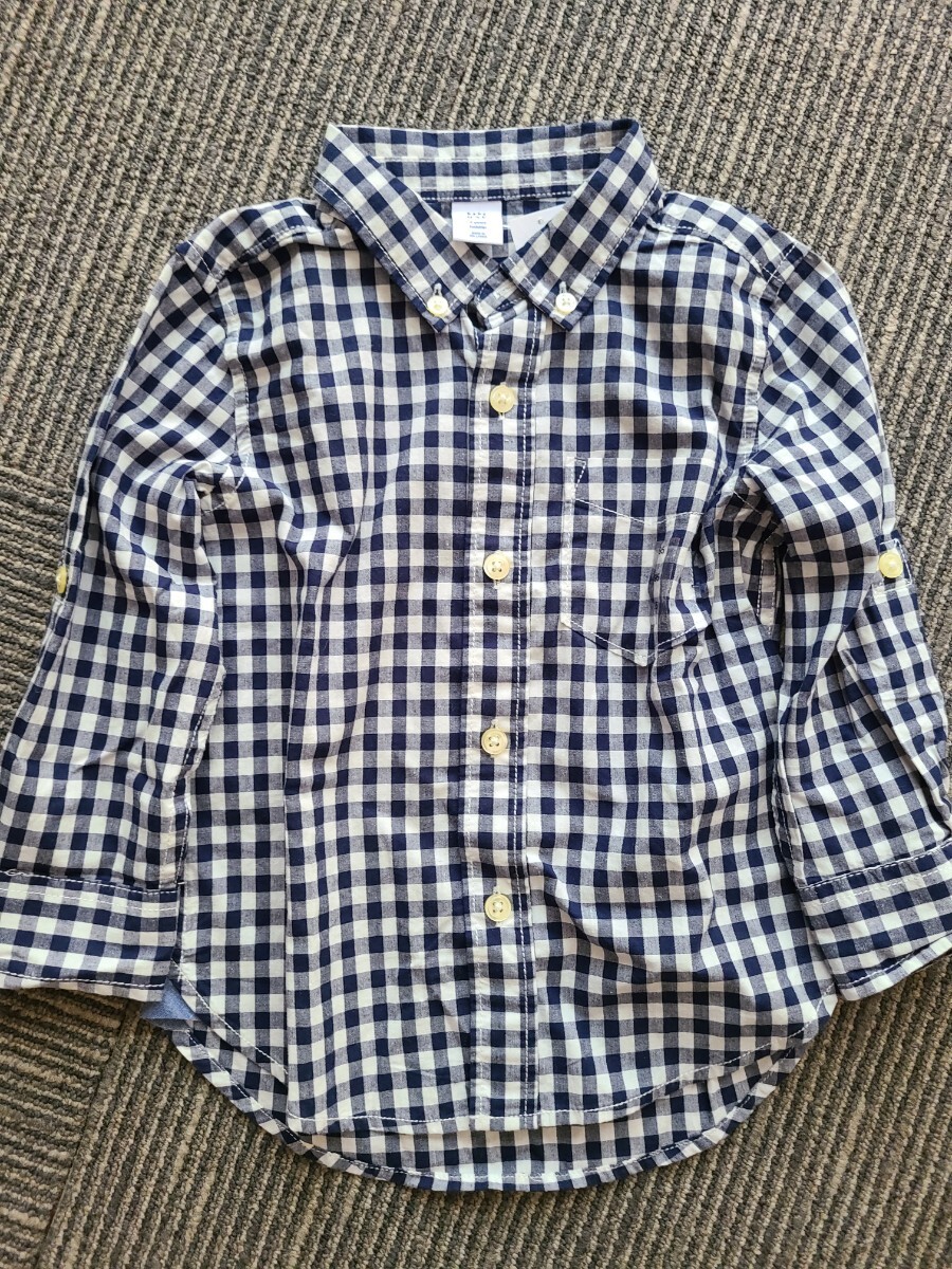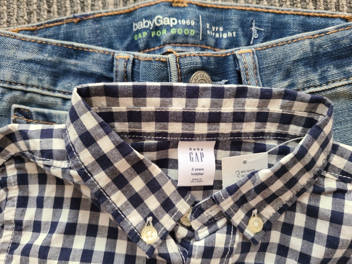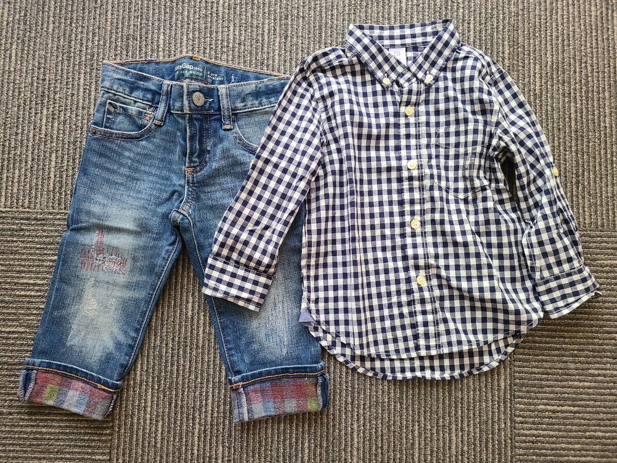 GAPのギンガムチェックシャツとデニムのセットです。