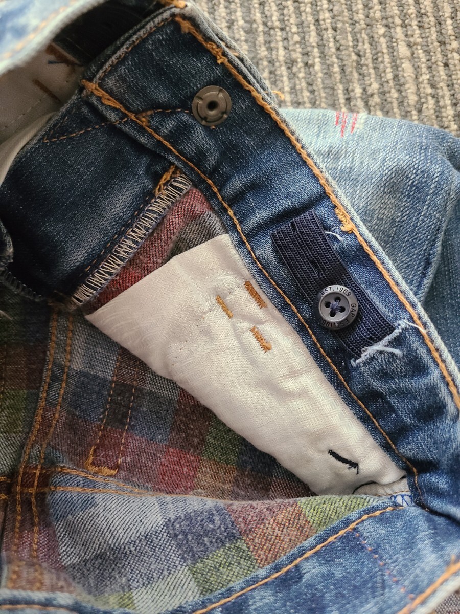 デニムは裏地がチェックプリントされていて、折り返すとチェック柄が見えます。後ろポケットにも少しチェックプリントがなされています。