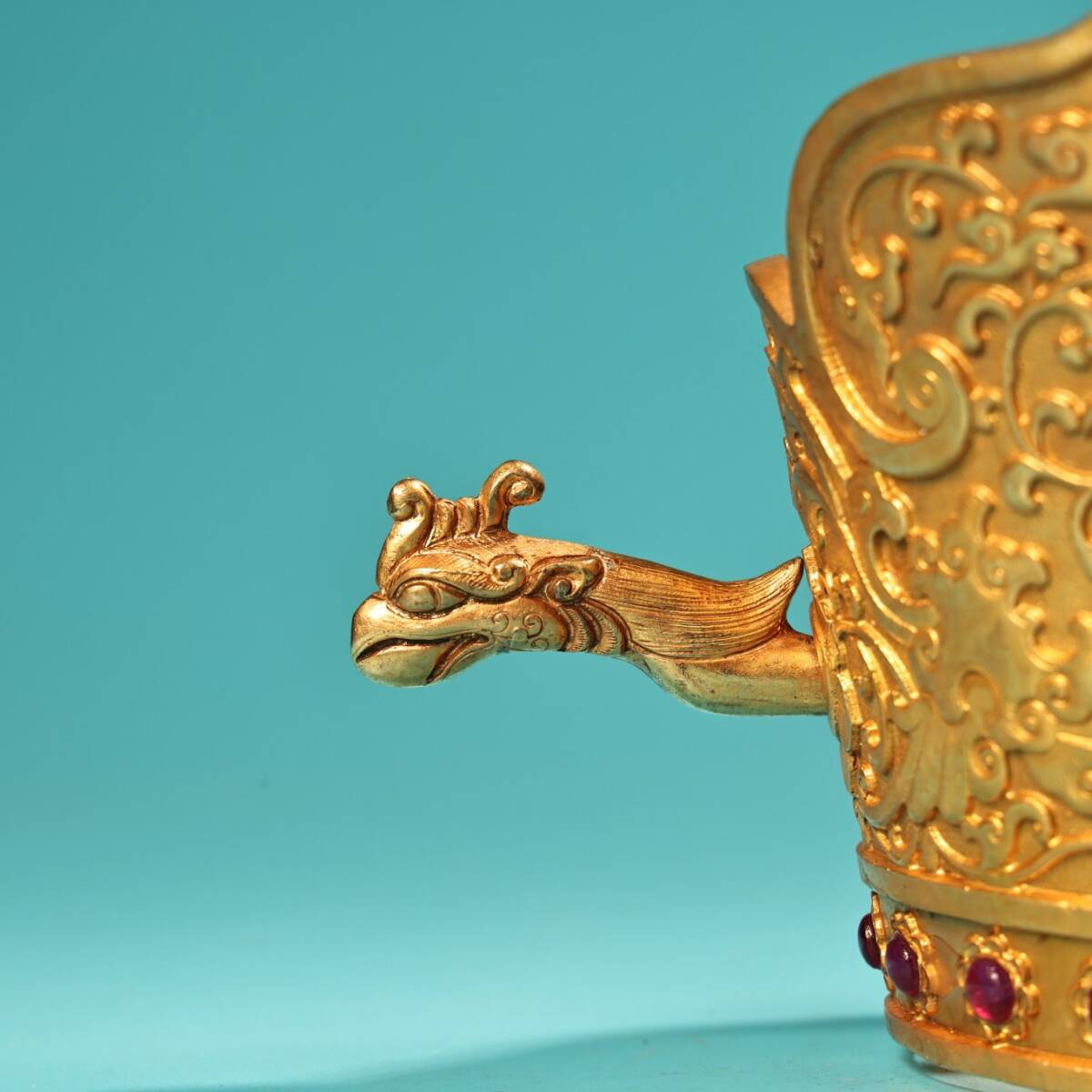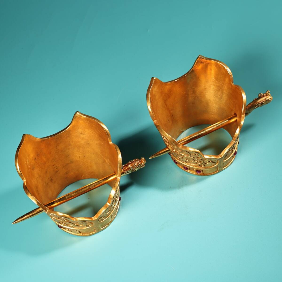 【超珍館蔵】銅製 塗金 發冠一對 置物 賞物 古賞物 古美術品 稀少珍蔵品