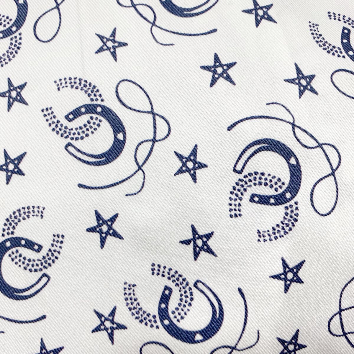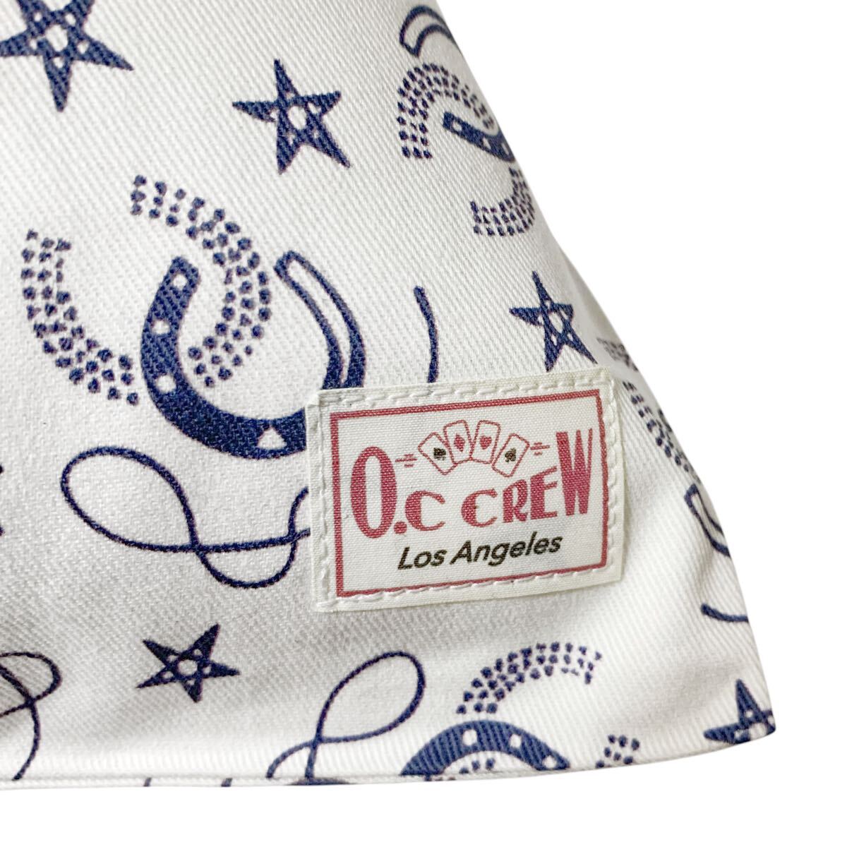 ホースシューをモチーフにしたO.C CREWオリジナルの総柄テキスタイルを使用したクッション。