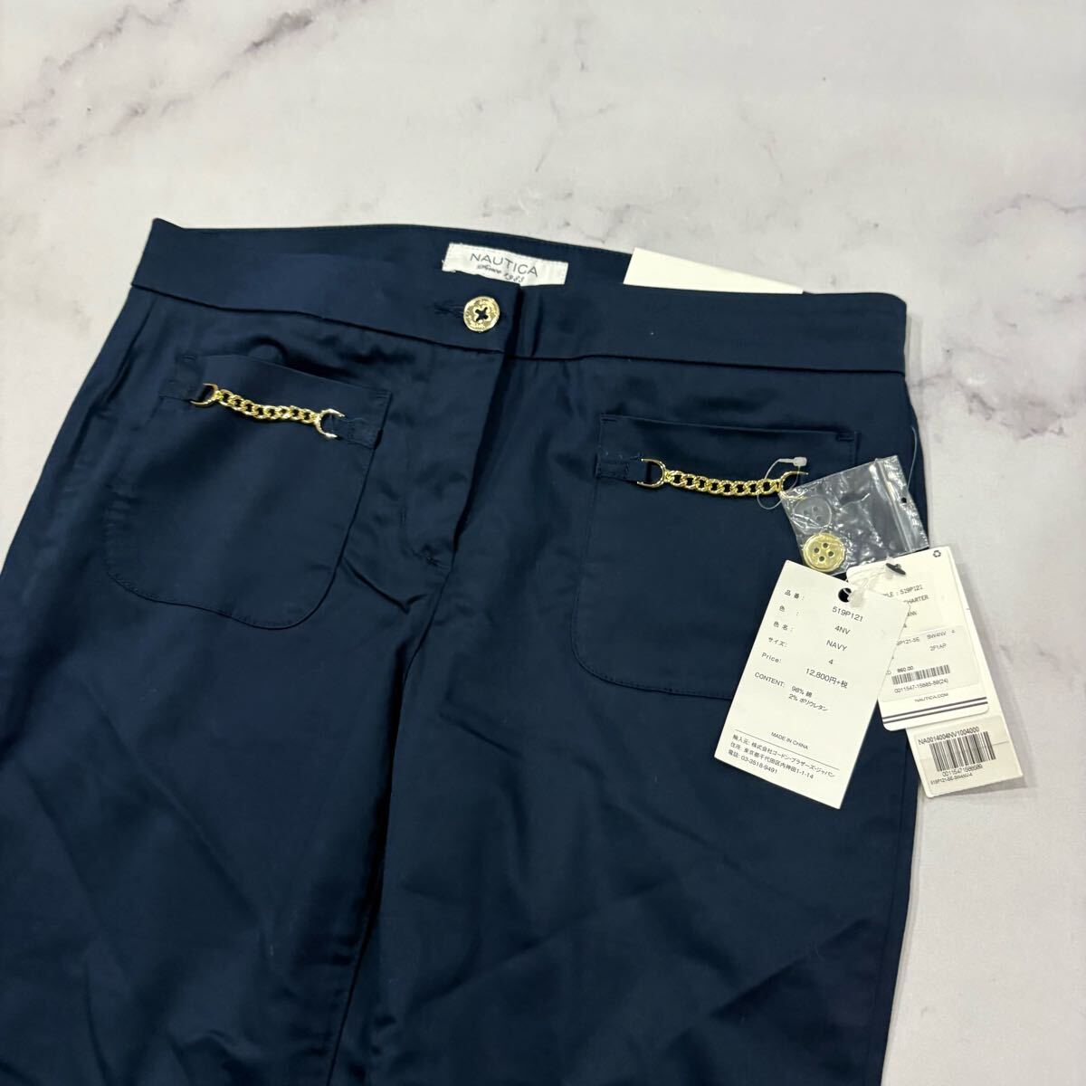 A21 ■ 未使用 '洗練されたデザイン' NAUTICA ノーティカ 高品質 ストレッチ素材 ストレート パンツ SIZE:4 レディース ボトムス NAVY系