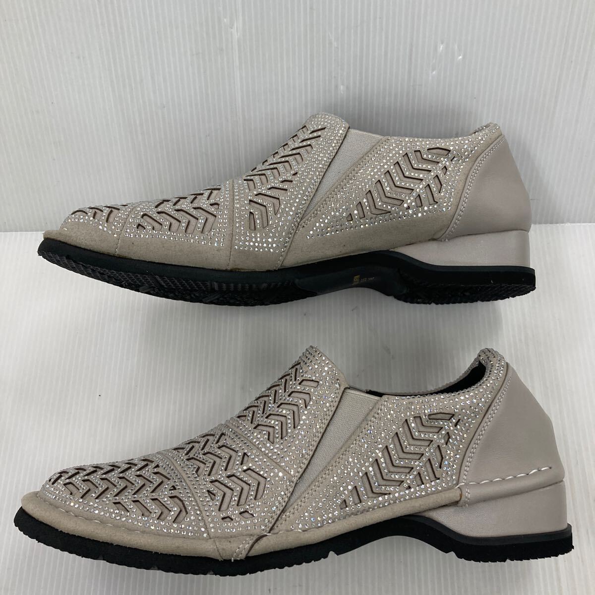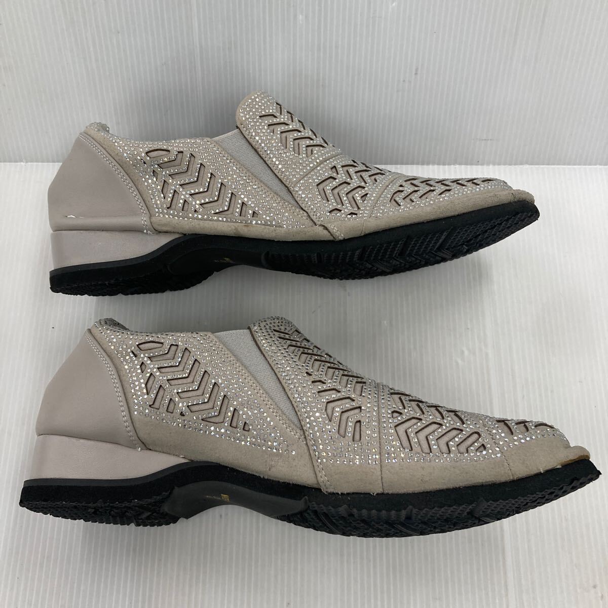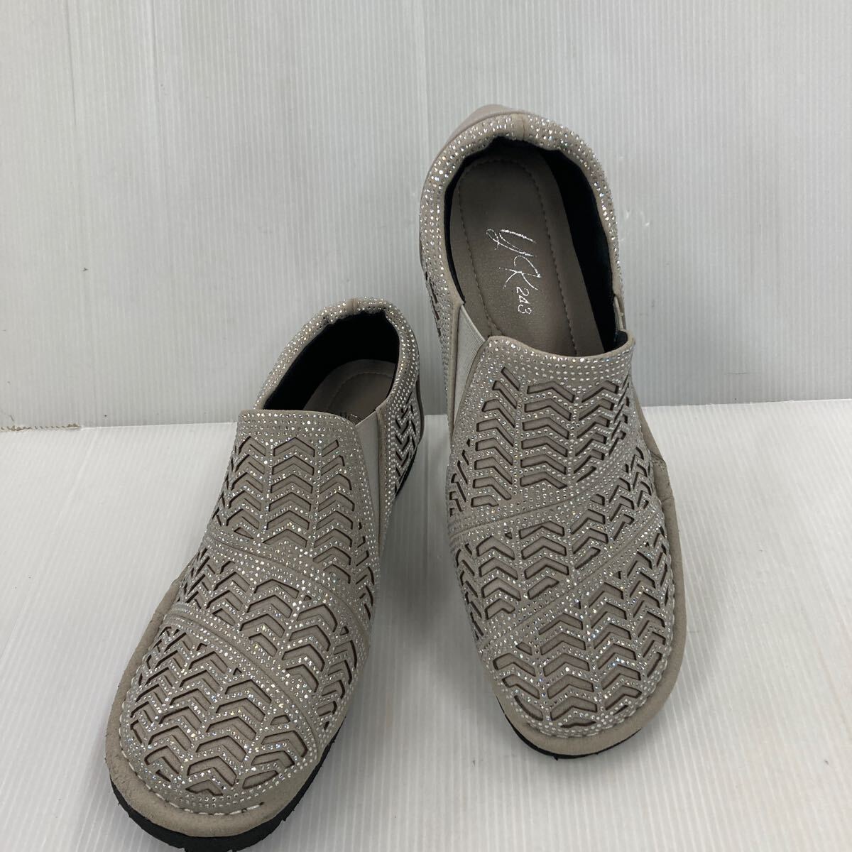 ★お買い得★キラキラ ゴージャススリッポン YK243 6729 L.GRY 24.5cm 幅広設計EEEE 日本製 おしゃれな足元を演出!