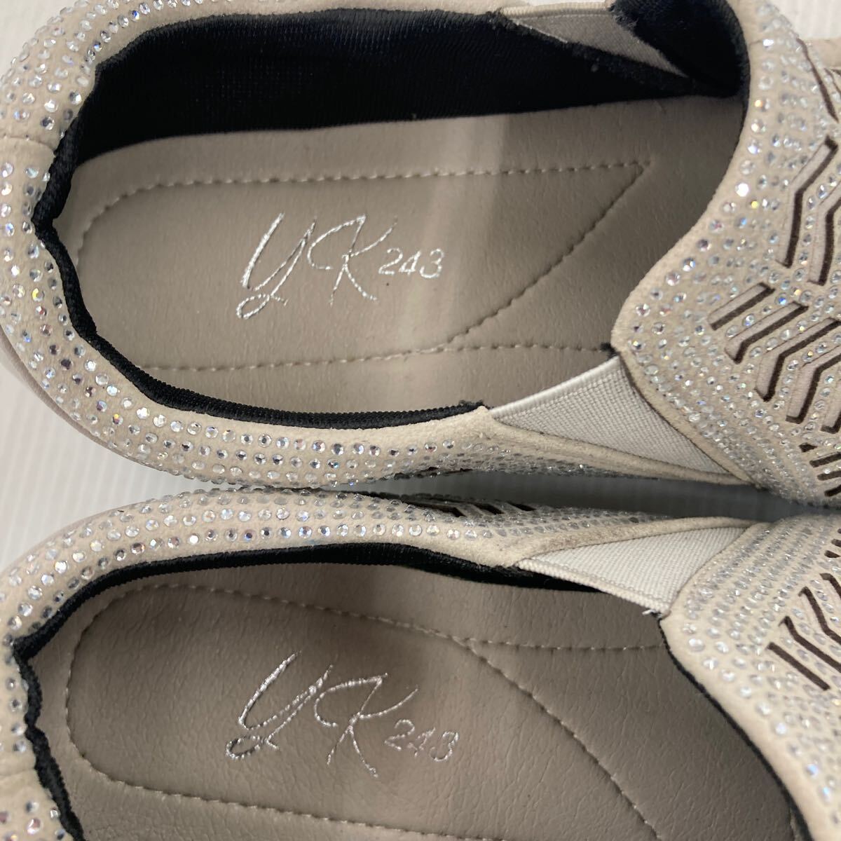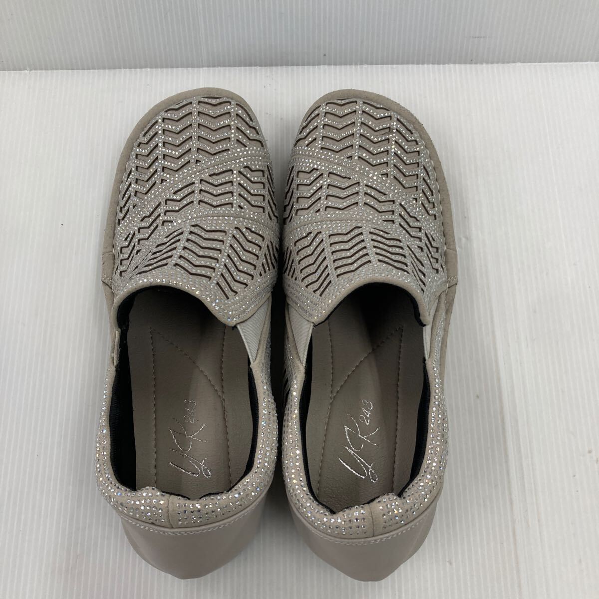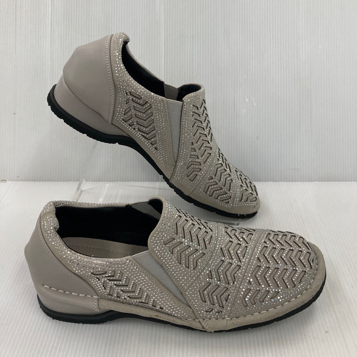 ★お買い得★キラキラ ゴージャススリッポン YK243 6729 L.GRY 24.5cm 幅広設計EEEE 日本製 おしゃれな足元を演出!