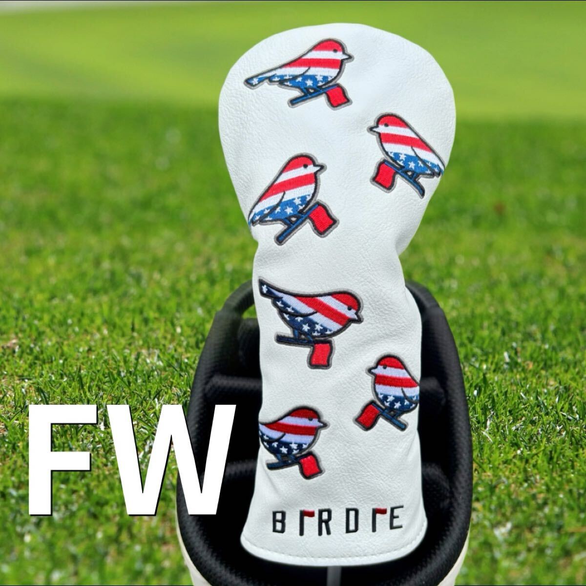 星条旗をモチーフにしたポップなバード柄が特徴の、BIRDIEブランド フェアウェイウッド用ヘッドカバーです。