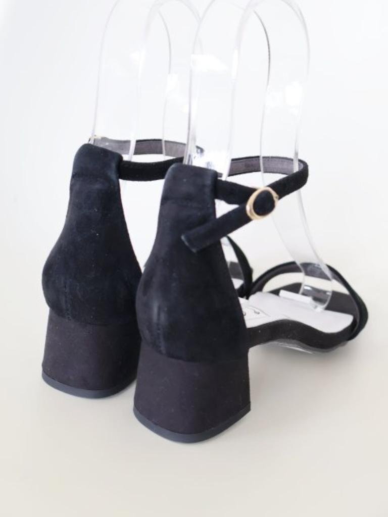 【送料込】Emma Francis   [レイン対応] ネックストラップサンダル 本革 M(23.5相当) ヒール4 ブラック 大人 おしゃれ 6453187