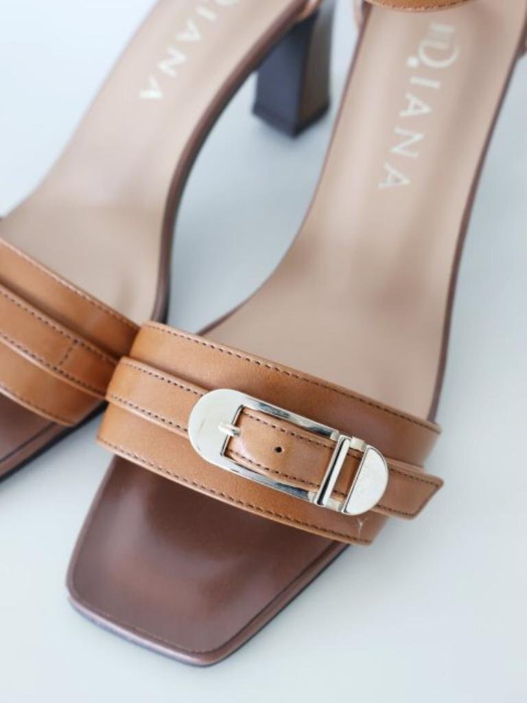 新品未使用品【送料込】DIANA ダイアナ WD5634 サンダル・ミュール 24.0cm ヒール7 ブラウン×ゴールド 大人 お出掛け 6453190