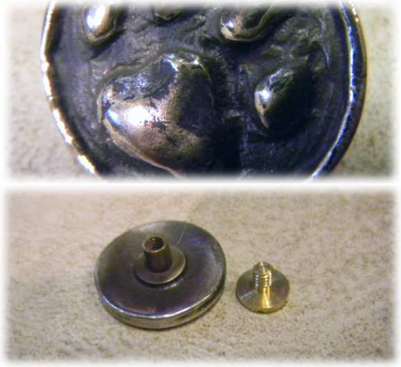 裏は、ネジ式になっていますので簡単にお手持ちのレザーアイテムに付けカスタムできます。