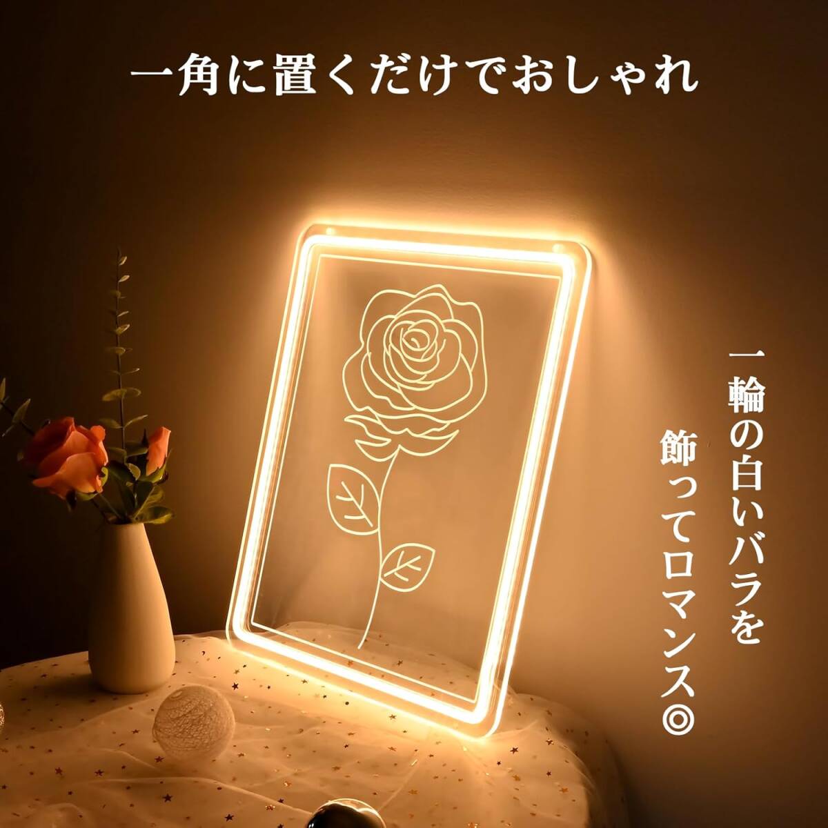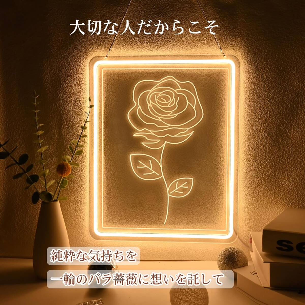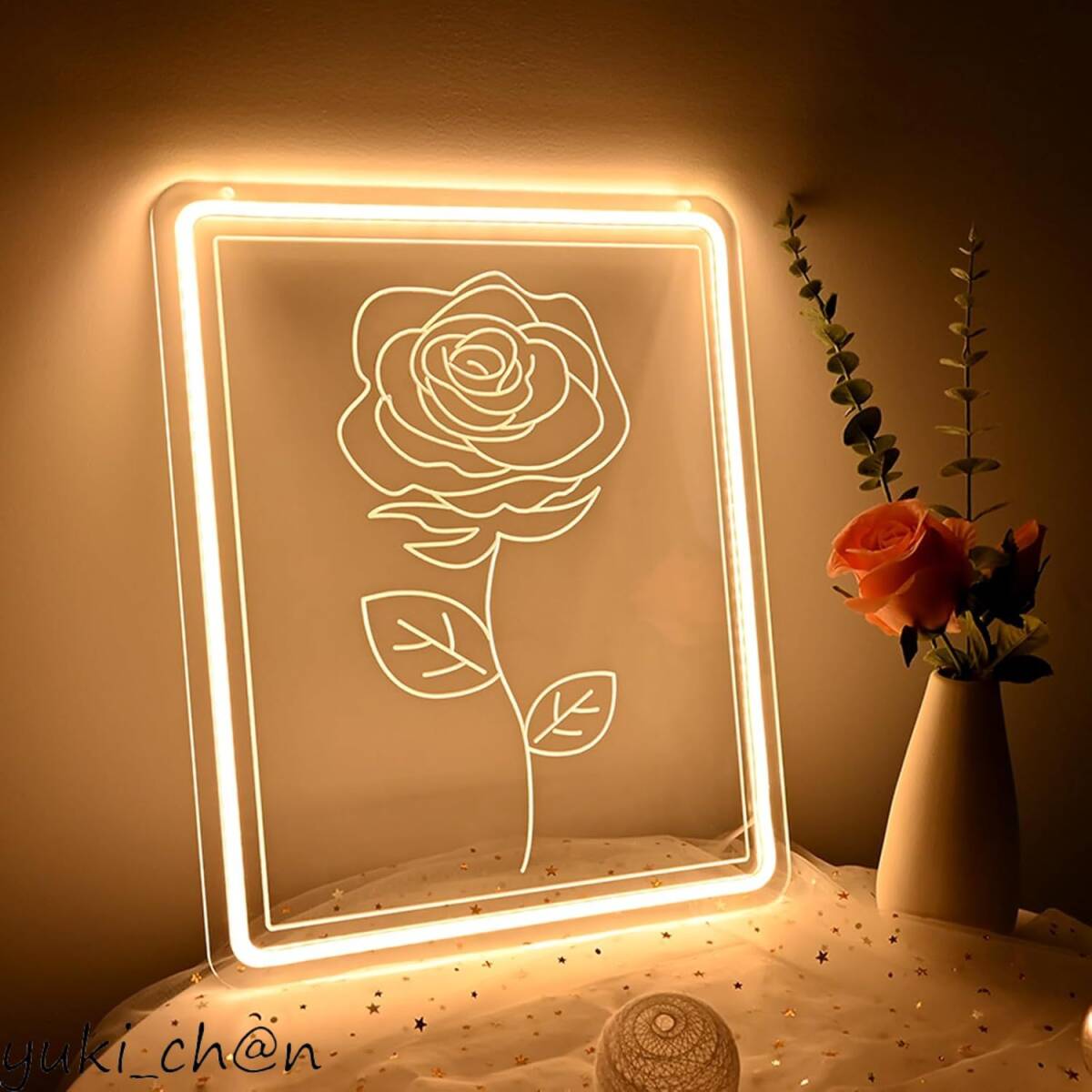 この一輪のバラネオンサインを飾れば、お部屋やお店が一気に優しく上品な雰囲気になります。