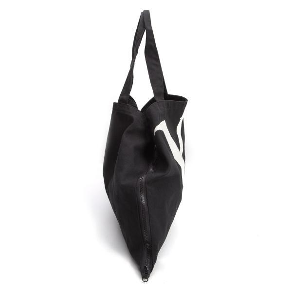 | ワイズY's ロゴプリントジッパーキャンバストートバッグ 黒オフ |