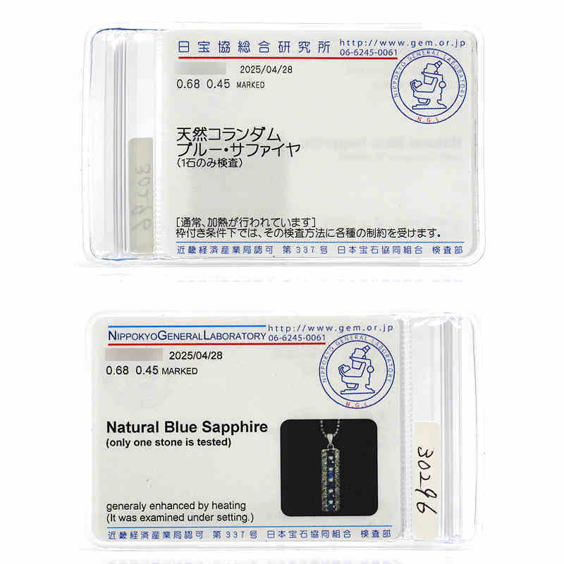 ソーティング記載 | 天然コランダム ブルー・サファイヤ (1石のみ検査) |