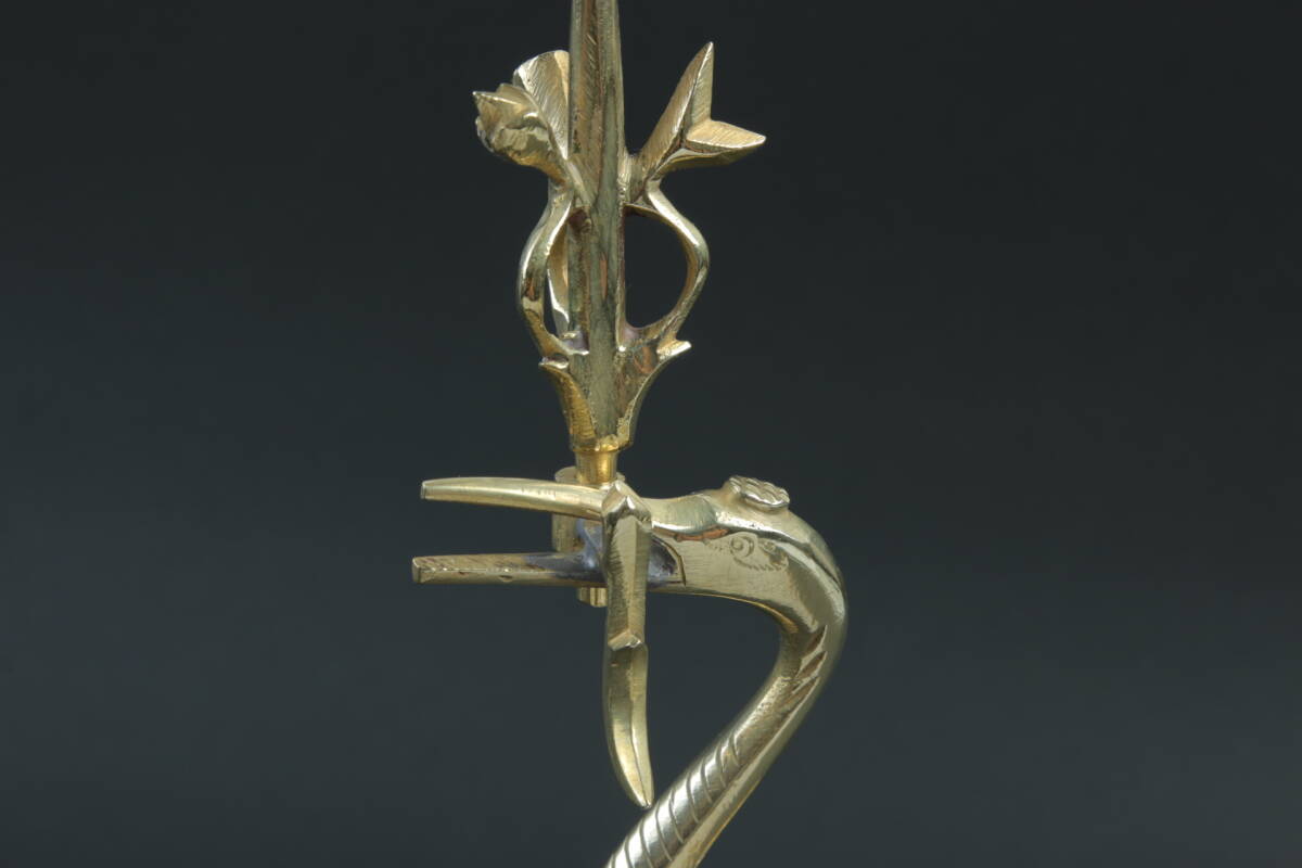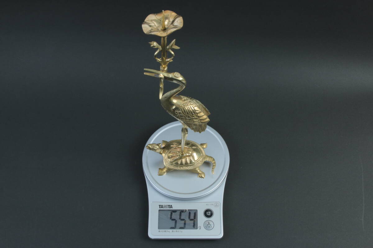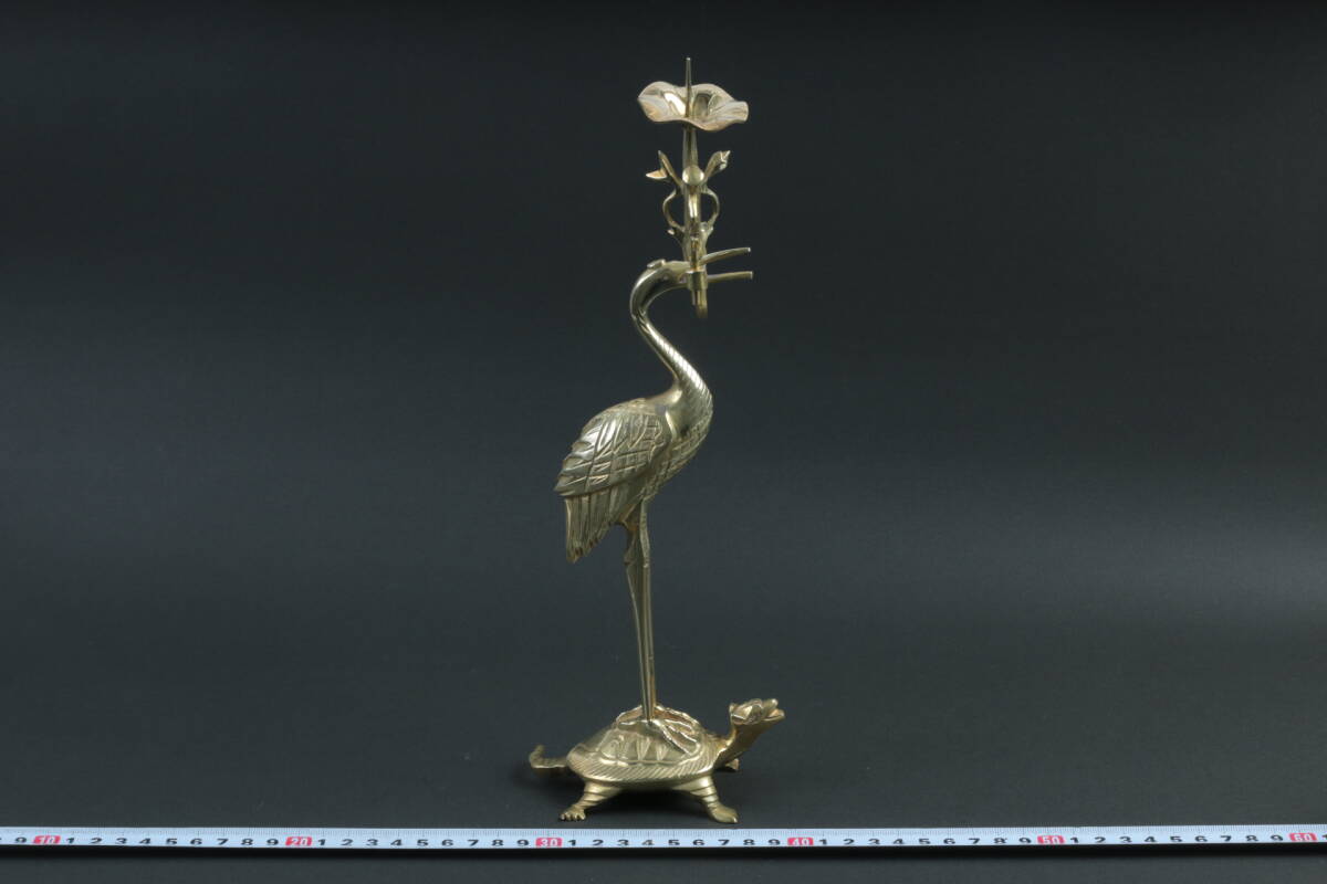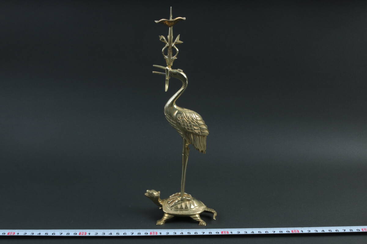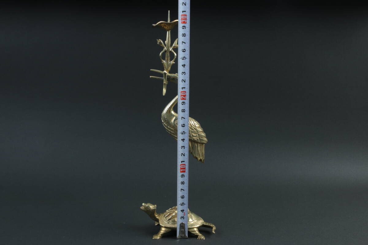 3562 仏具 鶴亀 燭台 30cm 554g 仏具 仏教 宗教美術 時代 インテリア 古道具