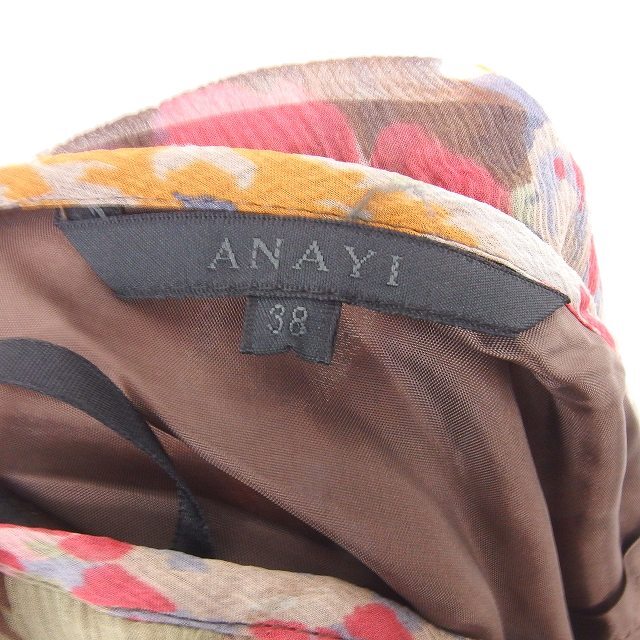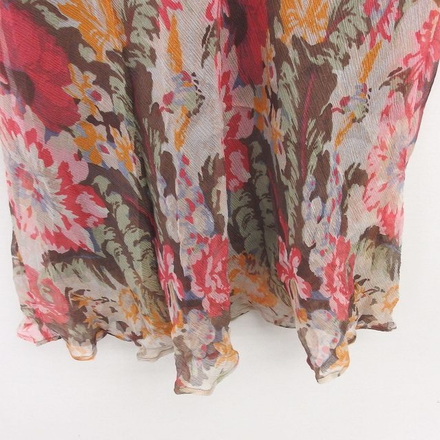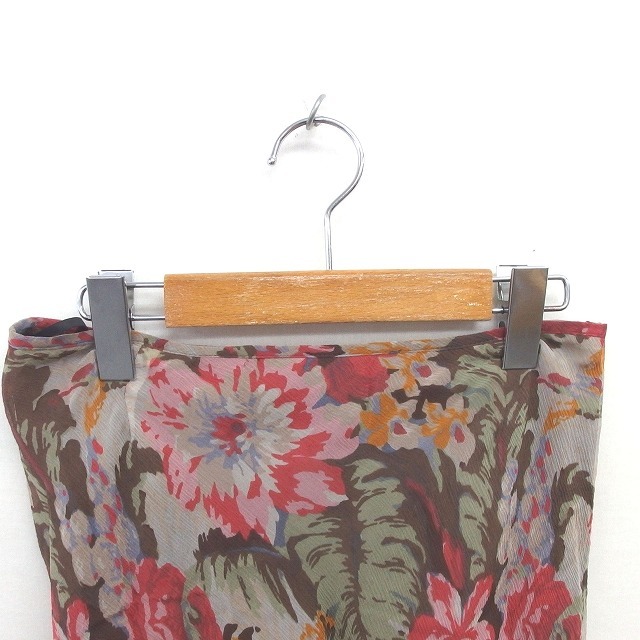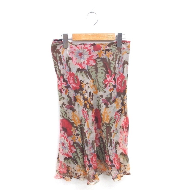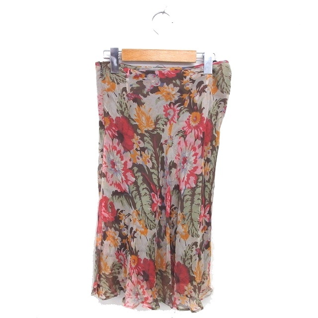 アナイ ANAYI フレア スカート シルク ミモレ丈 ロング 花柄 サイドジップ 38 ベージュ ピンク 茶 /TT12 レディース