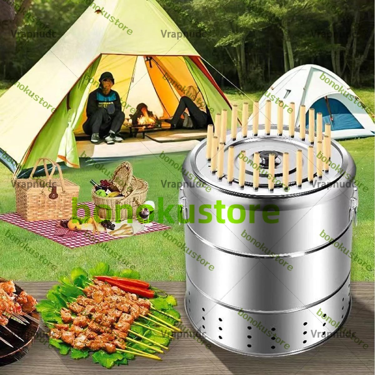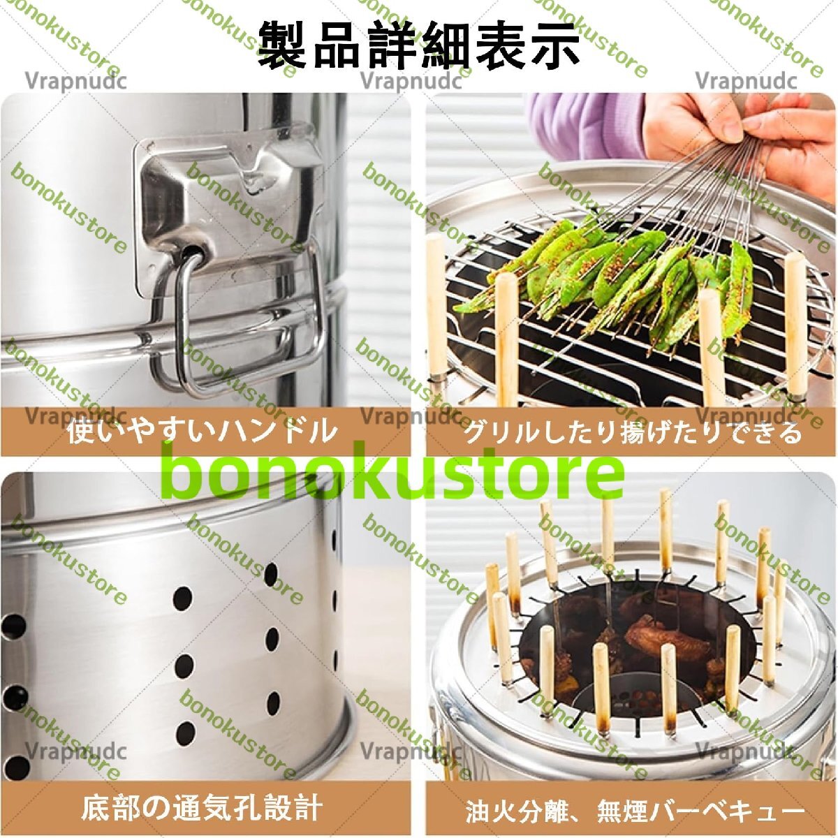 【油と炭素の分離】ドラム型無煙バーベキューグリルには内蔵オイルパンが装備されており、油滴を効果的に分離し、煙を排除し、無煙バーベキュー体験を実現します。屋内および屋外での使用に適しています。