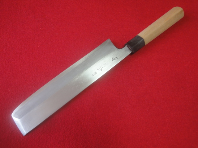 【有次】関東型薄刃包丁 刃渡21.5㎝ 全長37.5㎝ 峰厚5.4mm ※片刃 中古品 全国一律送料1200円