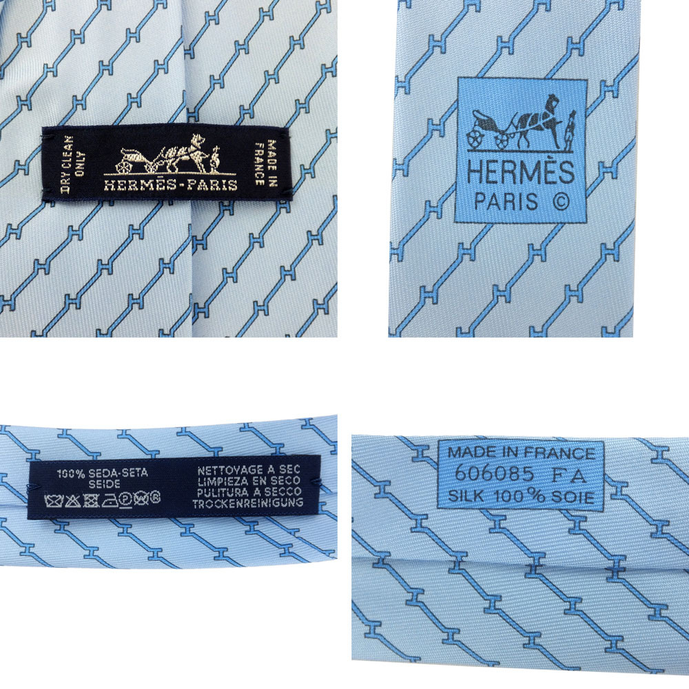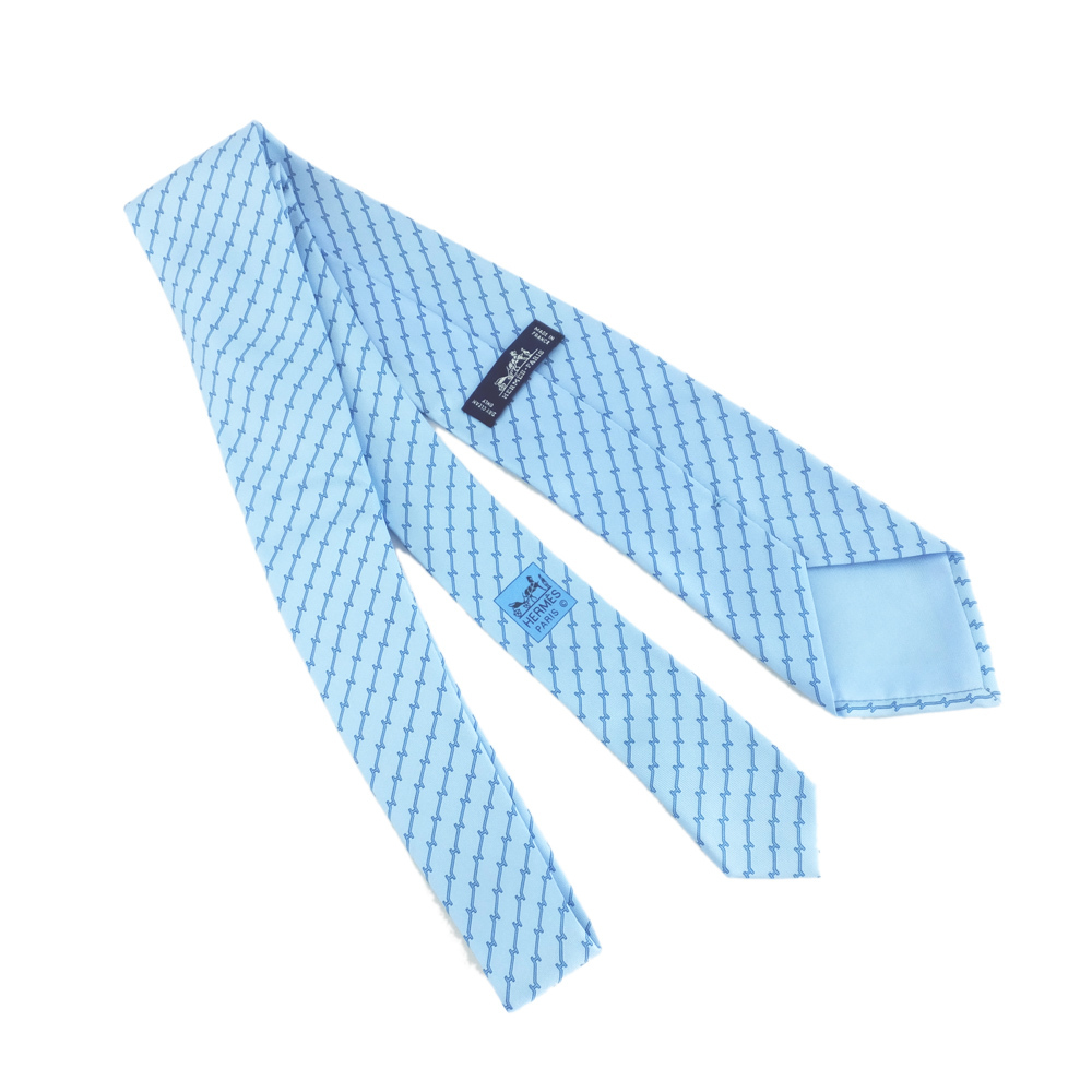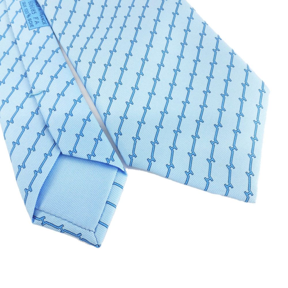 【天白】エルメス ネクタイ ライトブルー 水色 大剣幅約8cm シルク100% MADE IN FRANCE メンズ ビジネス 服飾小物