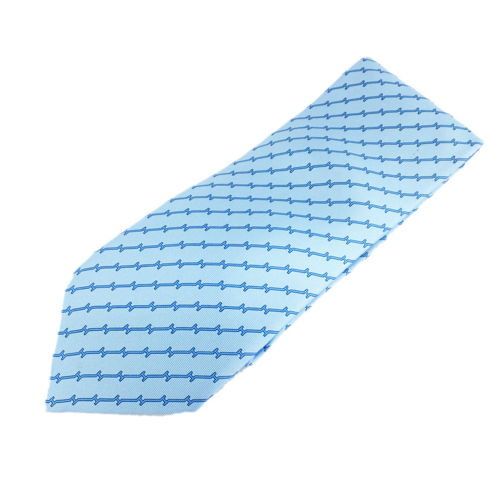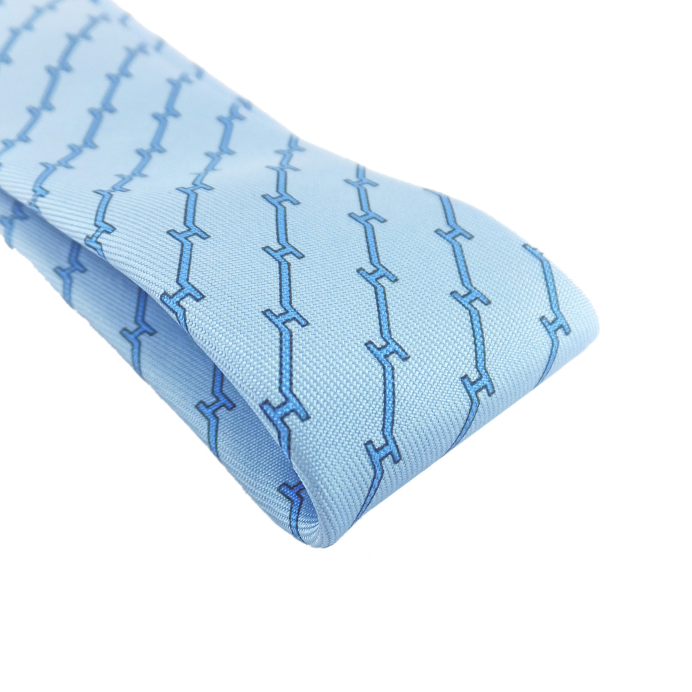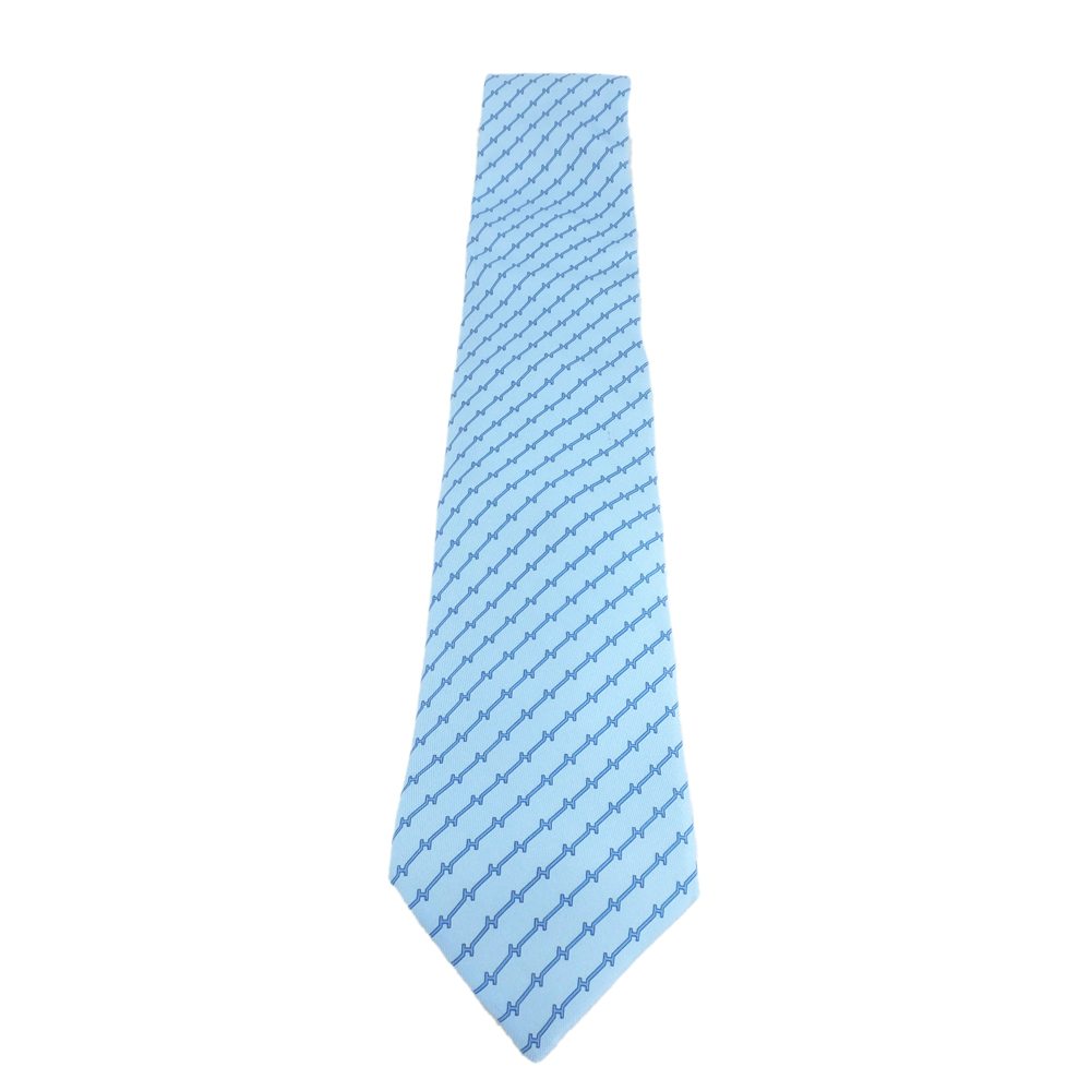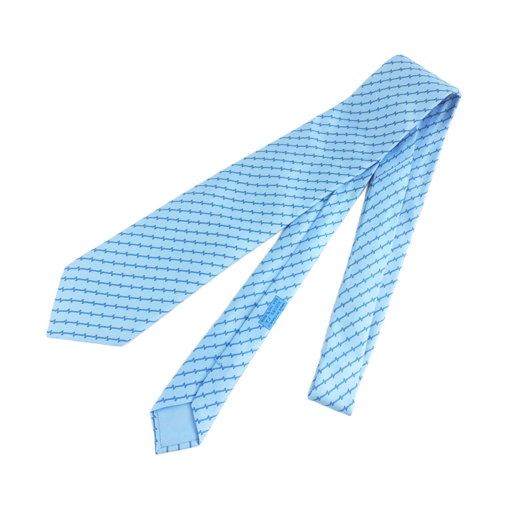 【天白】エルメス ネクタイ ライトブルー 水色 大剣幅約8cm シルク100% MADE IN FRANCE メンズ ビジネス 服飾小物