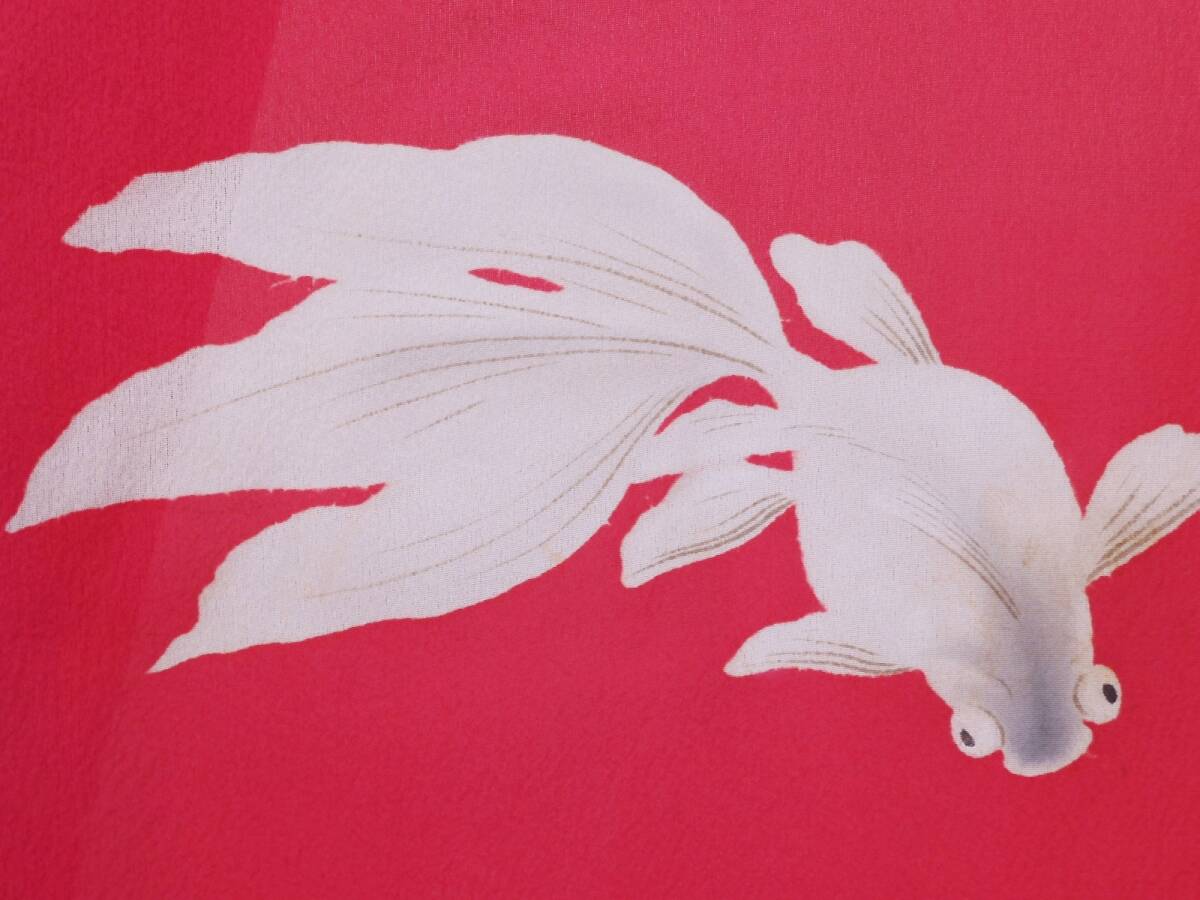 <銀の斧>正絹・アンティーク中振袖着物・金魚尽くし・夏着物・大正浪漫・出目金きんぎょ・キンギョ!