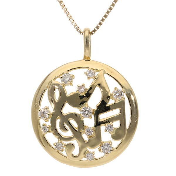 商品コード2023042606 発送は2週間ほどです音符が軽快に並びリズミカルな印象に。気分を上々にしてくれる人気アイテム。音符のモチーフは「人の心を豊かにしてくれる」といわれ、人生を楽しいものにしてくれるお守り代わりとして、遊び心溢れる人気が高いデザインです。音符が躍るように楽しく配置されつつ、ダイヤモンドを埋め込んでいるので、上品な印象も与えてくれます。音楽好きな方はもちろん、毎日を楽しく過ごしたい方に、心が弾むメロディーを奏でてみてはいかがでしょう。◆商品詳細材質K18ゴールド(ホワイト・ピンク・イエローよりお選びいただけます)宝石名天然ダイヤモンド 12石 0.28ct大きさ最大巾タテ約24.7mm(バチカン約5.7mm)×ヨコ約19mm 厚み約3.5mm チェーンK18 ゴールド /ベネチアンチェーン(アジャスター管付) 40cm※チェーンはトップより取外し可※チェーンのお色はトップと同色となります。備考材質・石目(ダイヤ)の刻印入りお誕生日 結婚記念日 クリスマス プレゼント ホワイトデー 結婚式 卒業式 入学式 新生活 母の日 成人のお祝い 彼女 恋人 女性への贈り物 ギフト対応 普段使い 日常使い デイリー