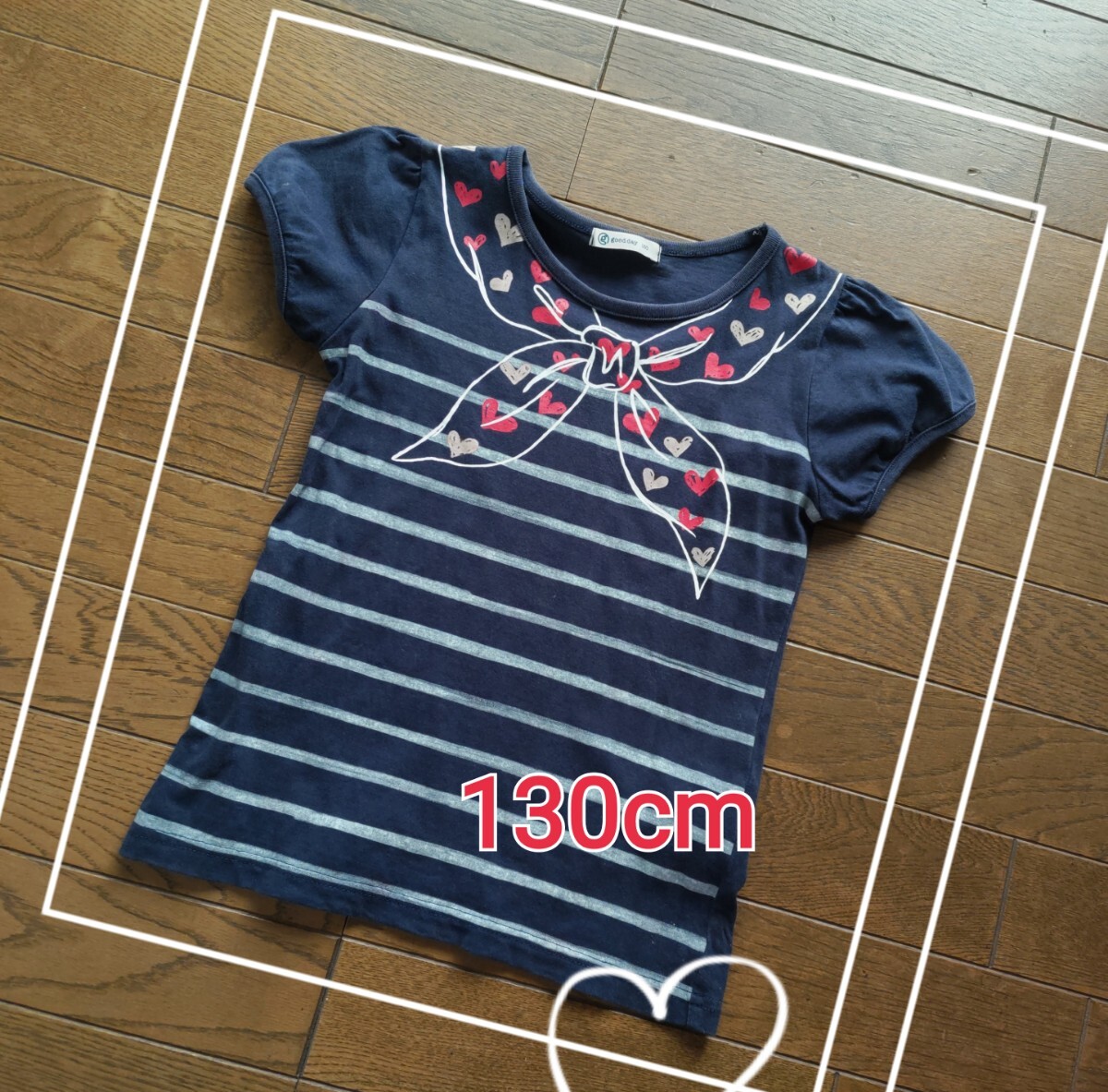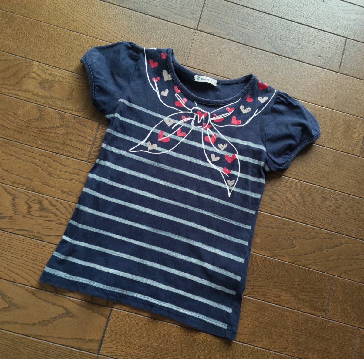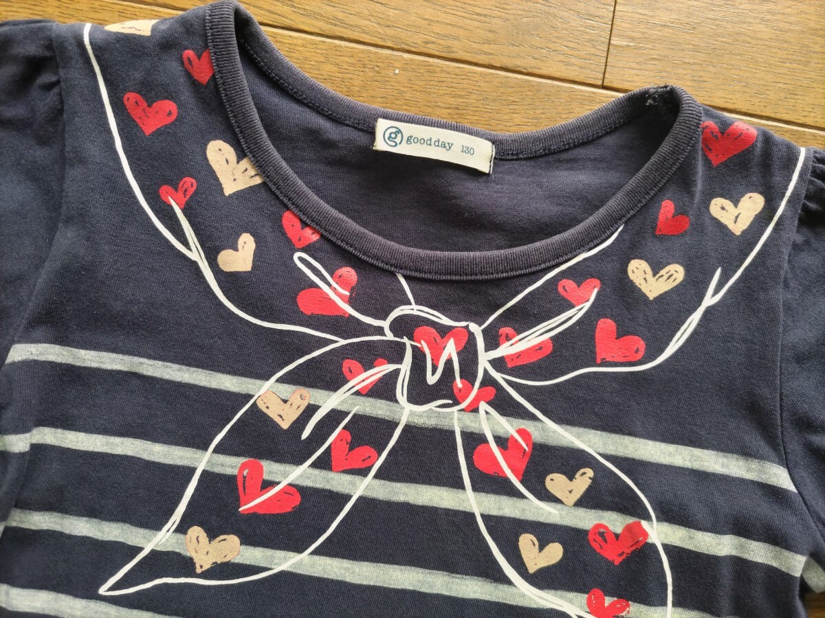 ストライプ柄にハートモチーフのリボンプリントが可愛いです。