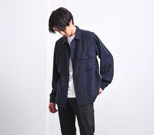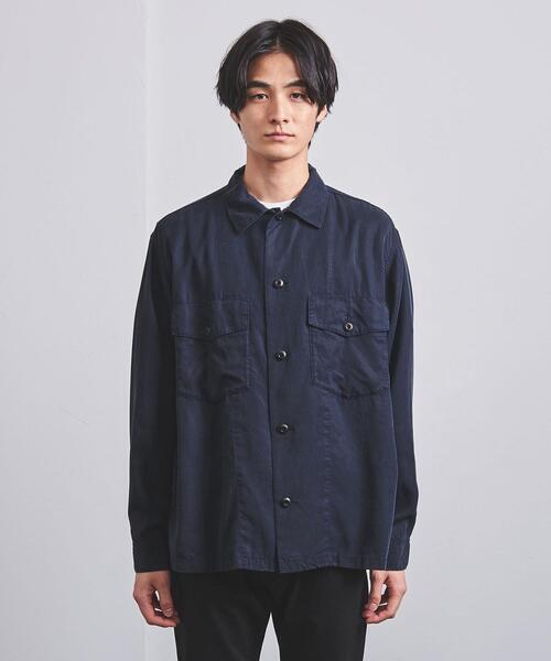 美品 UNITED ARROWS ミリタリー ネイビー シャツ 長袖 紺 青 ブルー ジャケット XL サイズ ユナイテッドアローズ 無地 メンズ navy