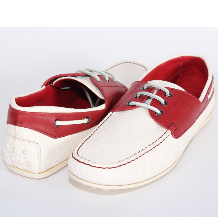 TOD'S × Ferrari トッズ × フェラーリ コラボ 限定 ドライビングシューズ CITY GOMMINI シティ ゴンミーニ ホワイト×レッド XRM0LR0L2708AG 159K レザー ローファー モカシン シューズ 靴 TODS スエード メンズ【新品/未使用/正規品】売れ筋