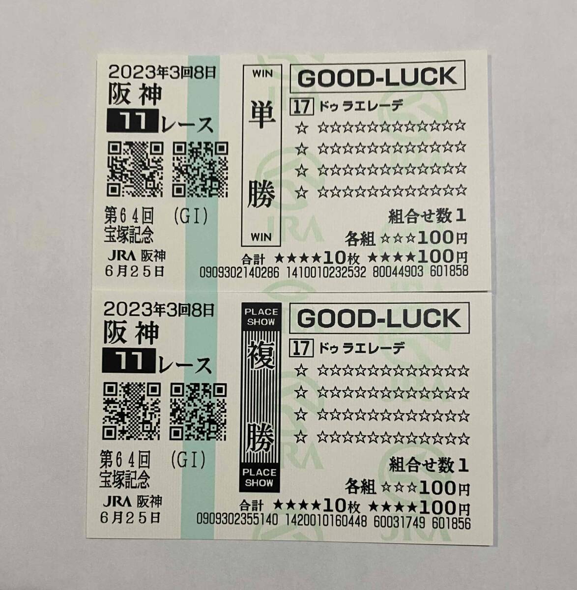 ドゥラエレーデ 宝塚記念 現地単勝・複勝馬券2点セット 2023 クイックピック