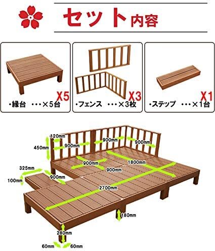 ウッドデッキ 人工木ウッドデッキ 9点セット 1.25坪 縁台 ウッドデッキ用 ウッドパネルデッキセット ウッドデッキタイル ブラウン