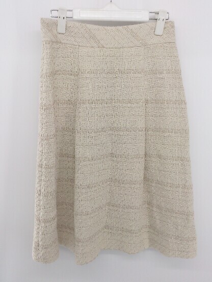 ◇ DRESSTERIOR 大人女子 こなれ感 タック ニット 膝下丈 フレア スカート サイズ38 ピンクベージュ系 レディース E