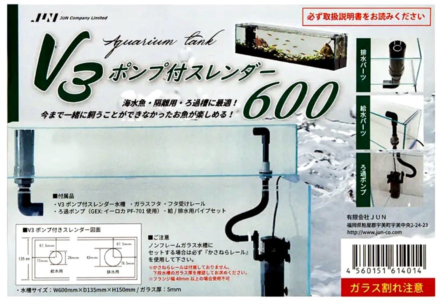 送料無料 V3ポンプ付スレンダー600水槽