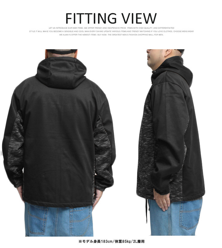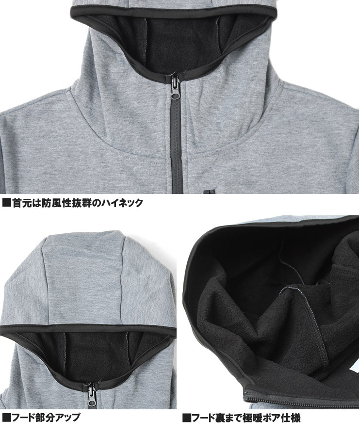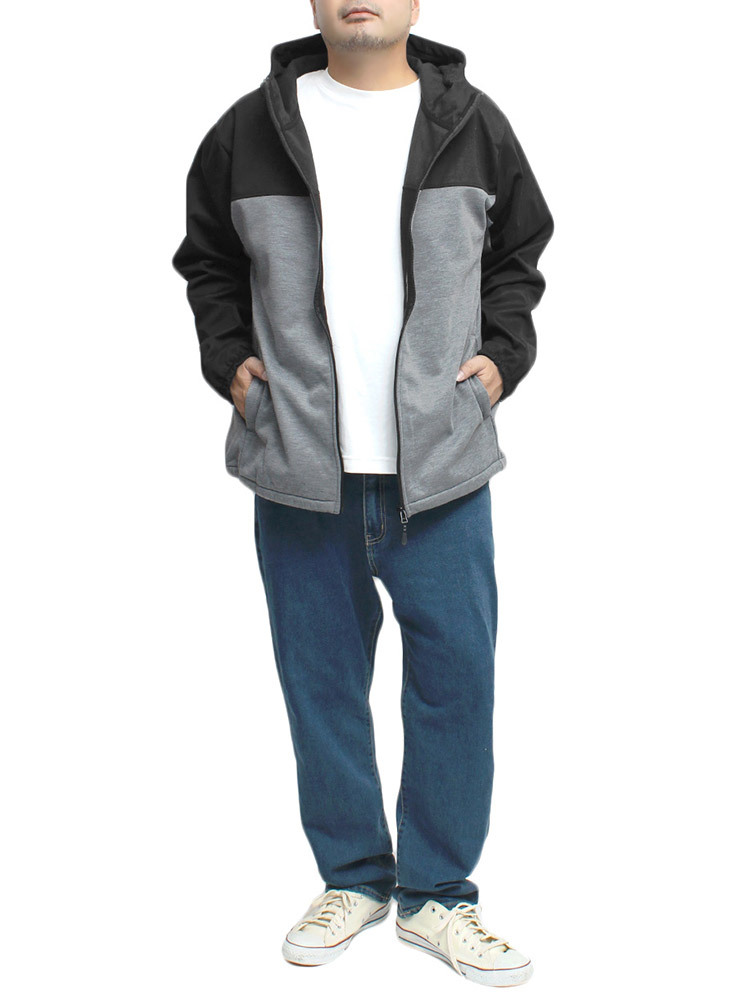 | 商品名 | 【新品】 4L グレー×ブラック パーカー メンズ 大きいサイズ 防風 フリース 裏起毛 ストレッチ ジップアップ ブルゾン ジャケット |