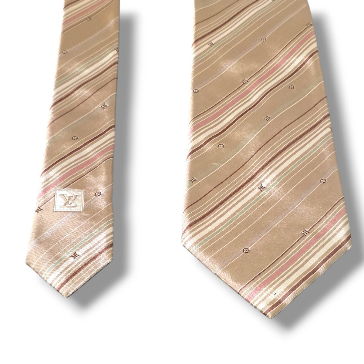 美品 外箱付き LOUIS VUITTON ルイヴィトン ネクタイ モノグラム ストライプ ドット ライトブラウン シルク100% イタリア製 ハイブランド 高級 肉厚 光沢