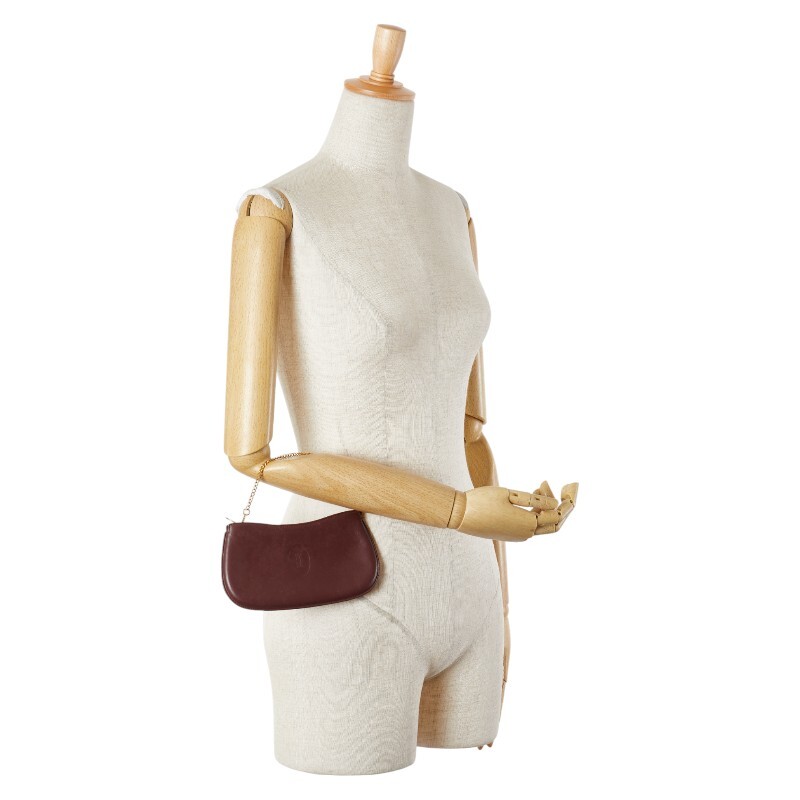 カルティエ マストライン アクセサリーポーチ ワインレッド ボルドー レザー レディース CARTIER 【中古】